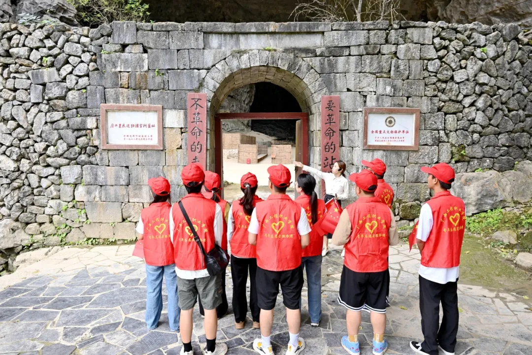 實(shí)踐團(tuán)和服務(wù)團(tuán)成員在講解員的帶領(lǐng)下,先后到廣西農(nóng)民運(yùn)動(dòng)講習(xí)所舊址列寧巖、韋拔群故居、中共紅七軍前委舊址魁星樓等地參觀學(xué)習(xí),追憶革命先輩,重溫革命歲月,接受革命精神洗禮,深刻感受了革命先烈為新中國(guó)勝利所付出的艱辛和犧牲,堅(jiān)定了理想信念,強(qiáng)化了青年使命擔(dān)當(dāng)。大家參觀后,感慨萬分。在列寧巖,被革命先烈在這艱苦的條件下奮勇斗爭(zhēng)的精神所折服。在韋拔群故居,回顧這位中國(guó)早期著名農(nóng)民運(yùn)動(dòng)領(lǐng)袖領(lǐng)導(dǎo)人的光輝奮斗歷程,為英雄不幸犧牲而悲痛惋惜;感受到了韋拔群等先烈在如此簡(jiǎn)陋的環(huán)境下,克服重重困難,堅(jiān)持革命,為廣西農(nóng)民運(yùn)動(dòng)和革命事業(yè)作出了巨大貢獻(xiàn)。在魁星樓,大家了解到了老一輩無產(chǎn)階級(jí)革命家鄧小平和張?jiān)埔莸韧倔@天動(dòng)地的豐功偉績(jī),深刻感受到了先烈們?yōu)楦锩鼊倮宫F(xiàn)的堅(jiān)定不移的革命理想信念。