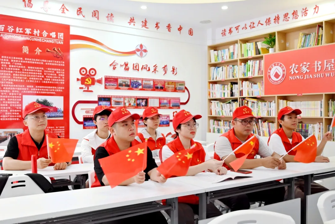 在百谷紅軍村,百谷紅軍村革命后代家屬帶領(lǐng)全體實(shí)踐團(tuán)、服務(wù)團(tuán)成員參觀了百谷紅軍村陳列室,她講解了百谷紅軍紅色革命故事。1929年12月,鄧小平、張?jiān)埔莸葻o(wú)產(chǎn)階級(jí)革命家領(lǐng)導(dǎo)和發(fā)動(dòng)了百色起義,建立紅七軍和右江蘇維埃政權(quán),創(chuàng)建右江革命根據(jù)地。百谷村131人參加革命,其中50多人參加紅七軍和農(nóng)民協(xié)會(huì),為鞏固和發(fā)展右江革命根據(jù)地的建設(shè)作出了積極貢獻(xiàn)。她將百谷村的歷史及百谷村發(fā)展現(xiàn)狀等向?qū)嵺`團(tuán)、服務(wù)團(tuán)成員進(jìn)行了講解,并深入交流了鄉(xiāng)村的文化建設(shè)。此外,百谷紅軍村革命后代家屬還帶領(lǐng)了全體師生黨員齊唱了《紅軍紅又紅》《工農(nóng)革命要團(tuán)結(jié)》《誰(shuí)是革命主力軍》《共產(chǎn)黨領(lǐng)導(dǎo)真正確》等紅歌。