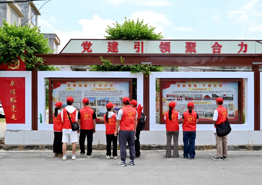 實(shí)踐團(tuán)、服務(wù)團(tuán)成員參觀了百谷紅軍村的黨建文化、中華民族團(tuán)結(jié)文化、鄉(xiāng)村建設(shè)發(fā)展宣傳長(zhǎng)廊,還在社區(qū)巷道分發(fā)了環(huán)境保護(hù)、禁毒防艾等倡議書(shū),開(kāi)展了關(guān)于愛(ài)國(guó)主義教育和基層建設(shè)發(fā)展的調(diào)研問(wèn)卷。