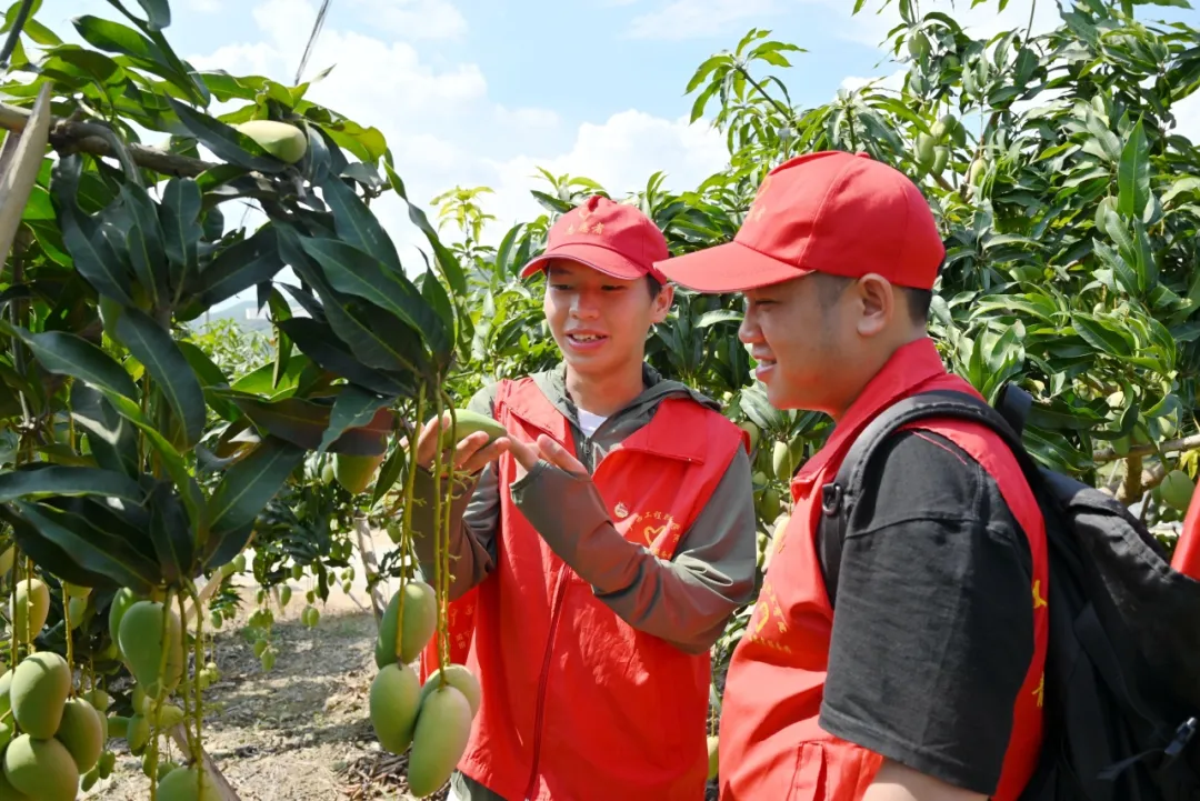 “青年先鋒隊(duì),基層實(shí)踐行”服務(wù)團(tuán)走進(jìn)那朗芒果園、百冠芒果加工廠開(kāi)展助力鄉(xiāng)村振興志愿服務(wù)活動(dòng),與果農(nóng)、工作人員了解田東縣芒果的種植、銷(xiāo)售、產(chǎn)業(yè)鏈等情況。