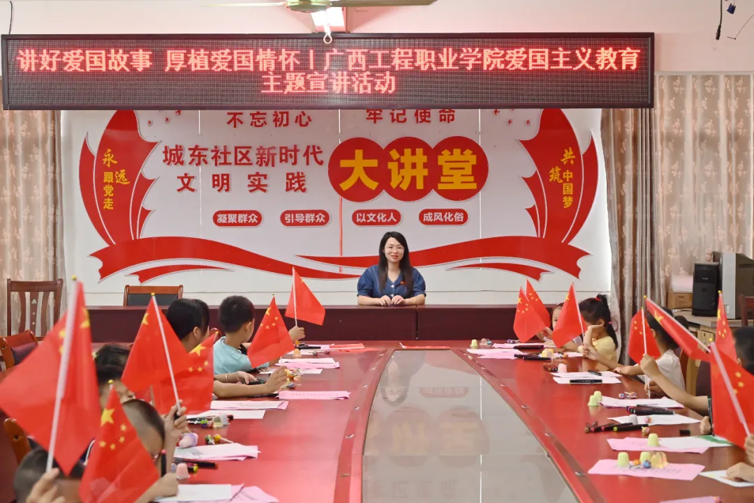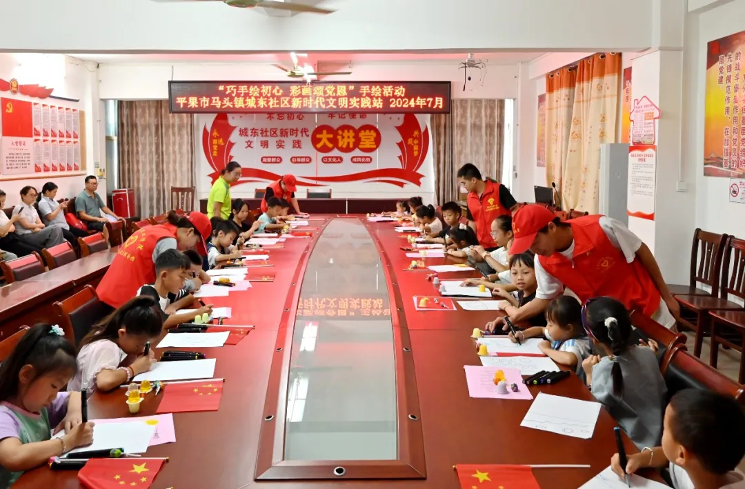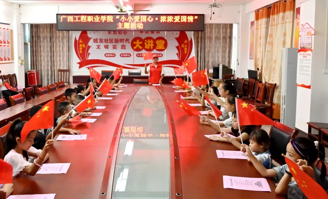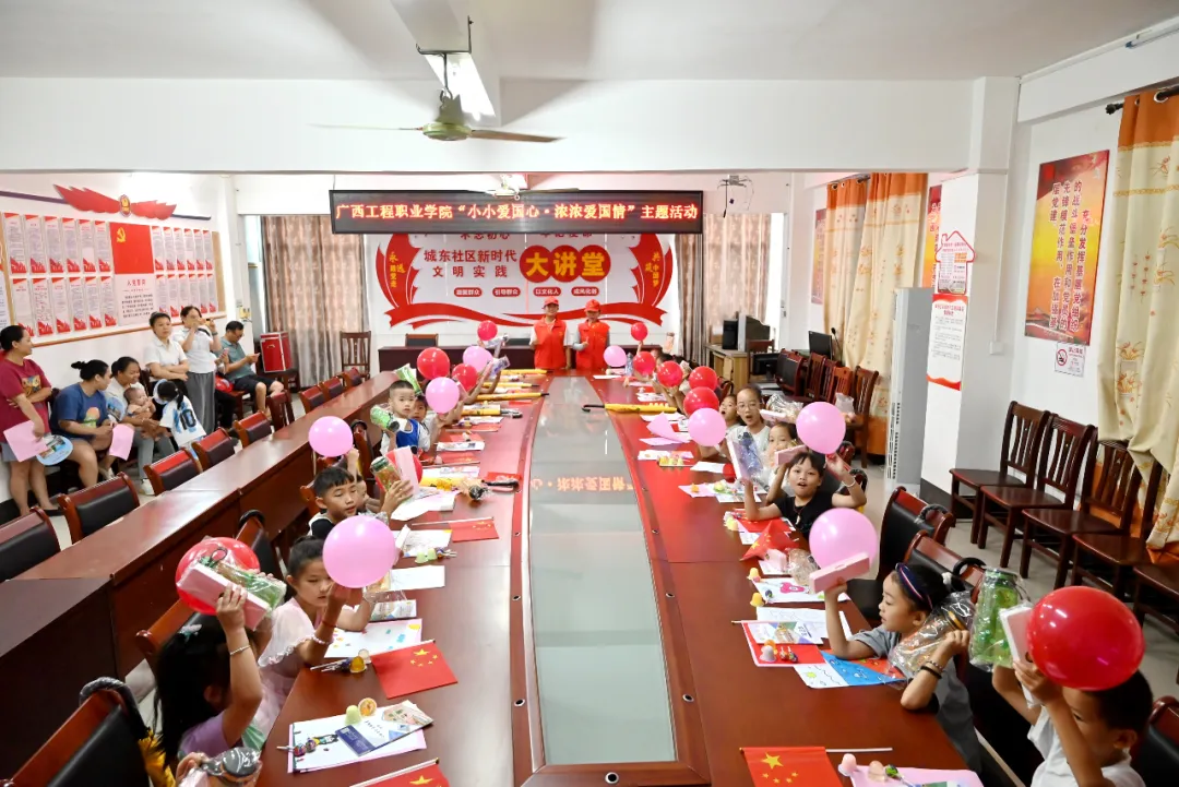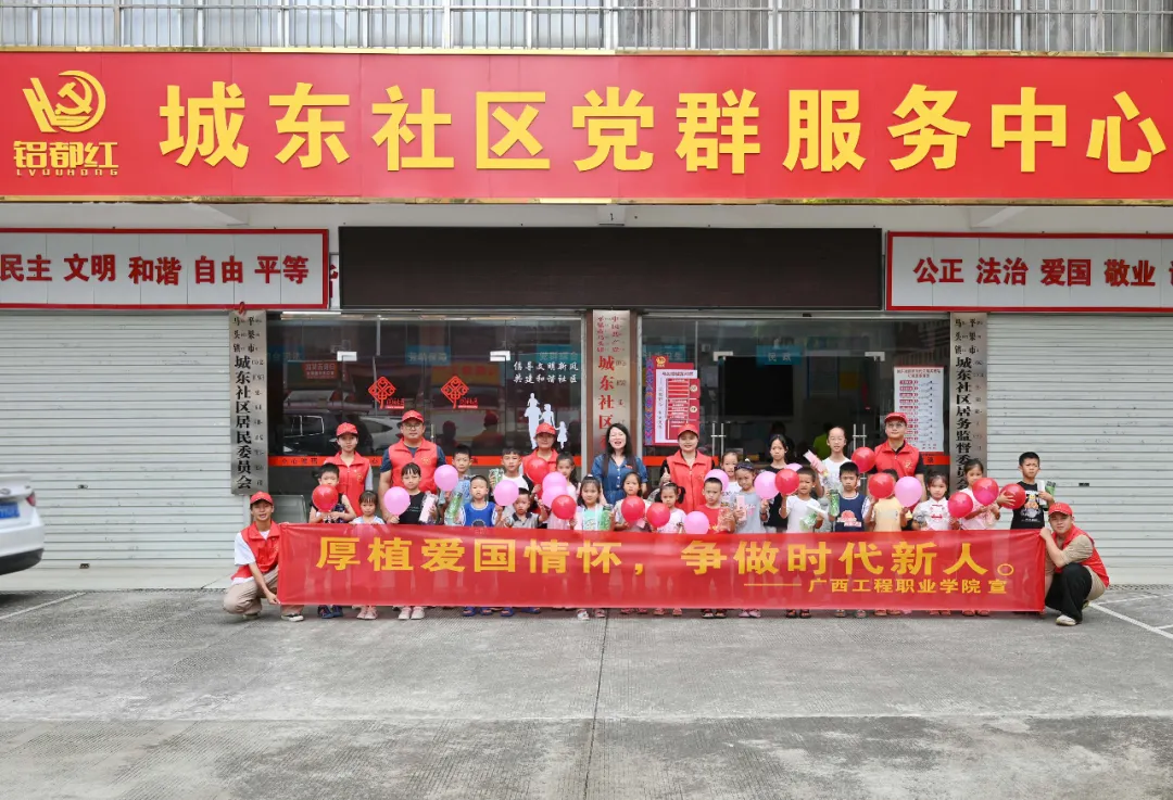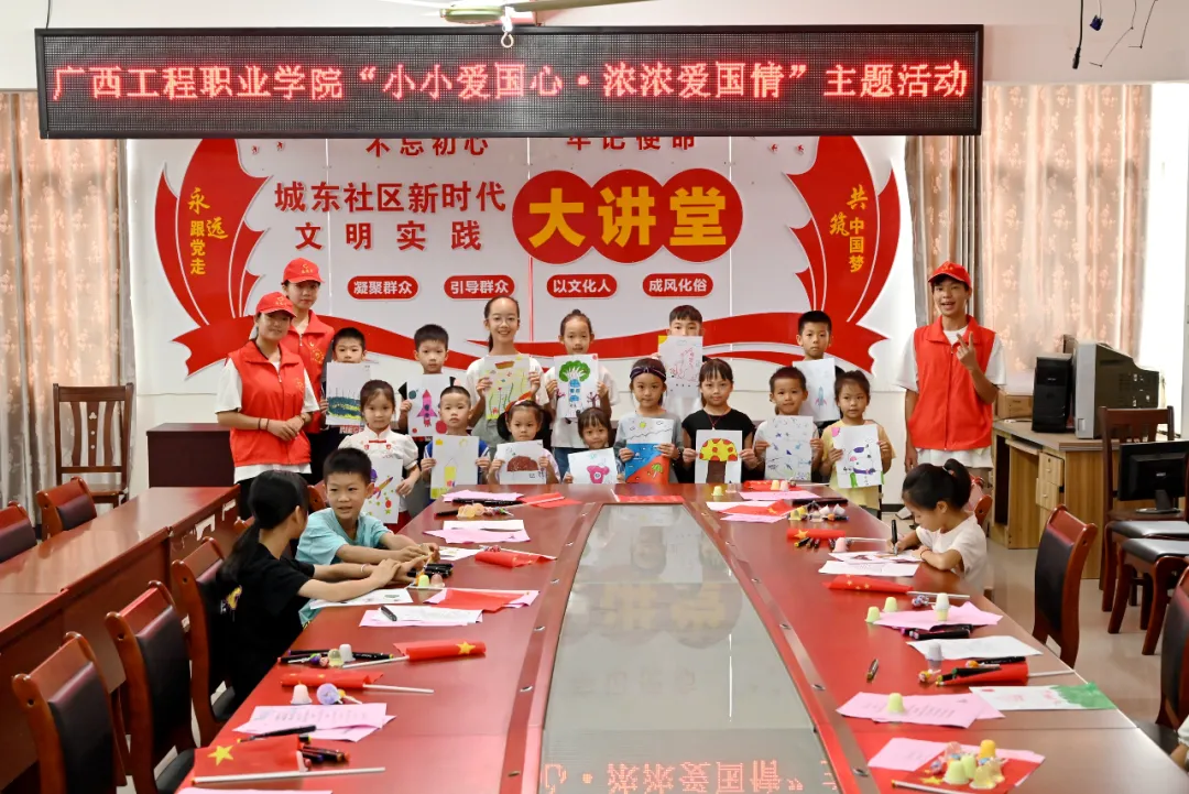 今年是新中國成立75周年,為了進一步弘揚愛國主義精神,踐行社會主義核心價值觀,2024年7月19日,廣西工程職業(yè)學院“青年先鋒隊,基層實踐行”服務團、“傳承紅色基因,勇?lián)鷷r代使命”實踐團到平果市馬頭鎮(zhèn)城東社區(qū)開展“小小愛國心 濃濃愛國情”“巧手繪初心 彩畫頌黨恩”“中華民族一家親 同心共筑中國夢”等特色實踐服務活動。