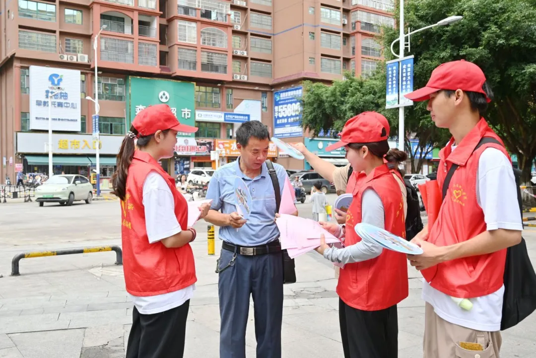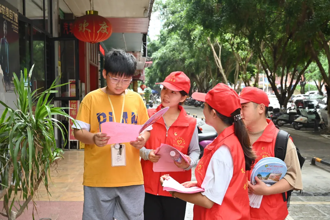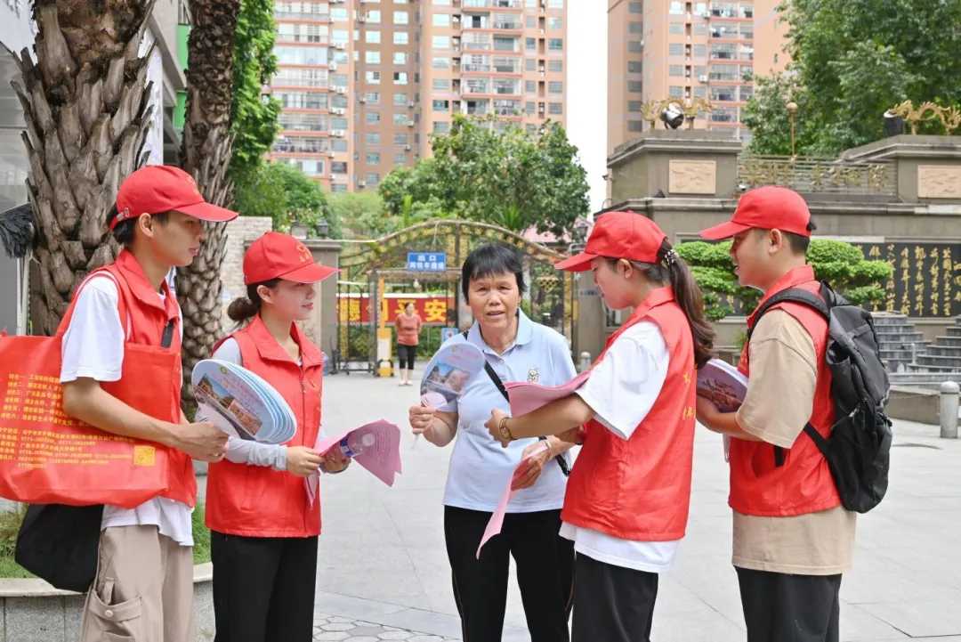 實踐團、服務團成員還深入社區(qū)街道分發(fā)了環(huán)境保護、禁毒防艾等倡議書,開展了關于愛國主義教育和基層建設發(fā)展的調(diào)研問卷。