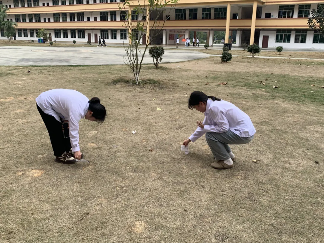 志愿者們彎下腰,用手中的鏟子和掃把清理雜草和垃圾。他們小心翼翼地避開花草,以實際行動讓校園的每一條道路都干凈整潔。