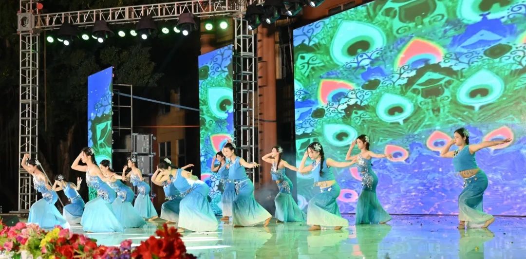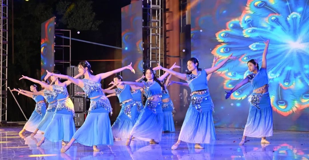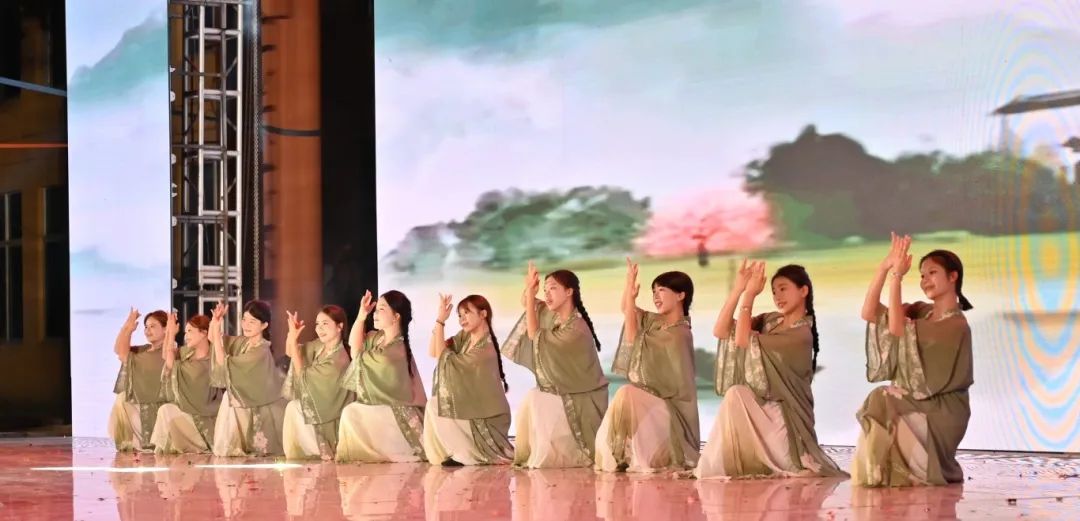 舞者們以婀娜身姿,勾勒出民族風(fēng)情與校園精神交織的美妙畫卷。她們宛如春日里破土而出的新芽,帶著清新與靈動(dòng),在舞臺(tái)上緩緩舒展。每一個(gè)動(dòng)作都輕盈飄逸,仿佛是被春風(fēng)輕拂過的柳枝,柔美而富有韻律