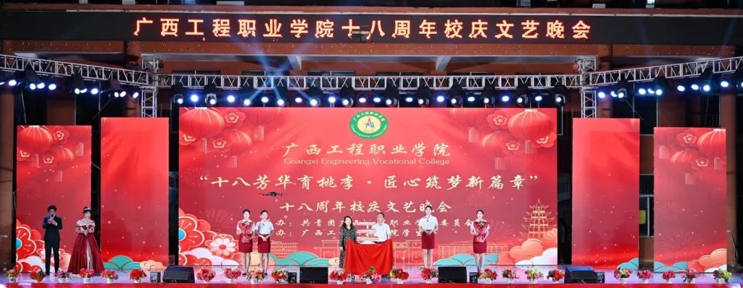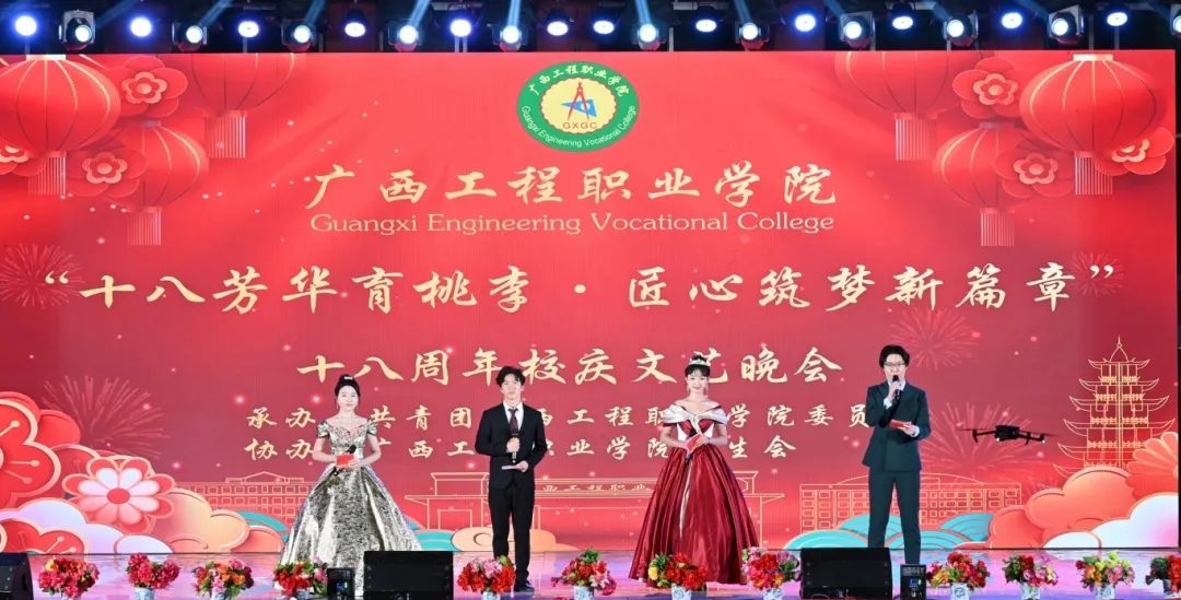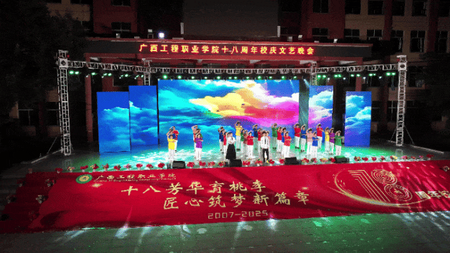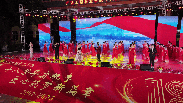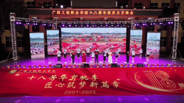 在黨委書記、督導(dǎo)專員蒙本曼宣布廣西工程職業(yè)學(xué)院2025年“十八芳華育桃李·匠心筑夢(mèng)新篇章”18周年校慶文藝晚會(huì)正式開始后,煙花綻放,禮炮齊鳴,全場(chǎng)爆發(fā)出熱烈的掌聲和歡呼聲,整個(gè)校園都沉浸在歡樂的海洋中。