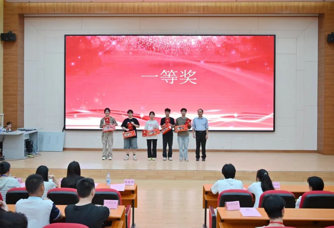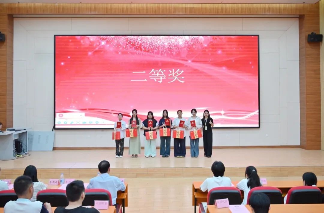 團委副書記李麗清為獲得“二等獎”的同學(xué)頒獎