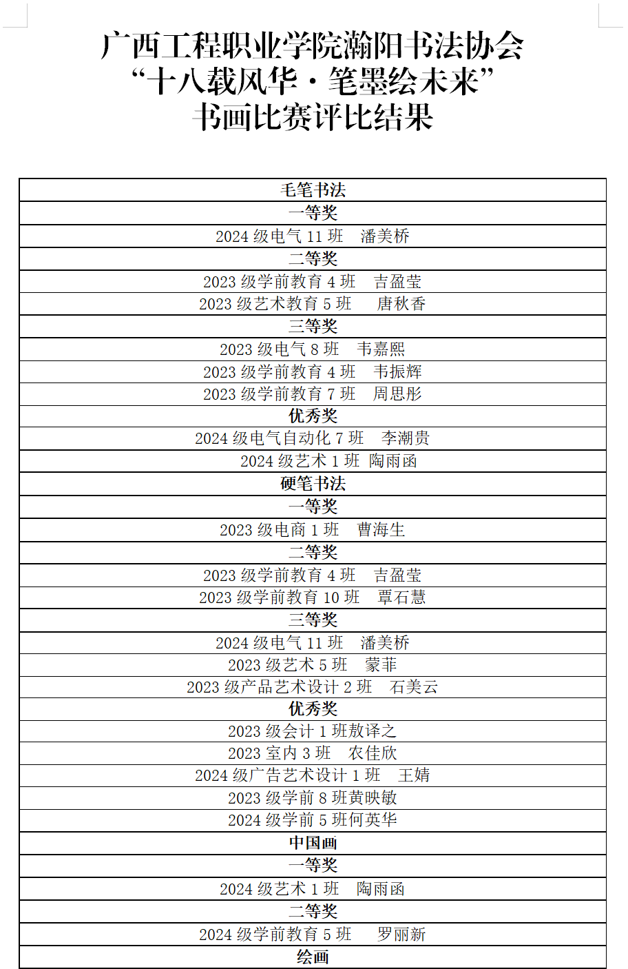 書畫比賽評比結(jié)果