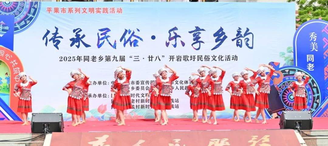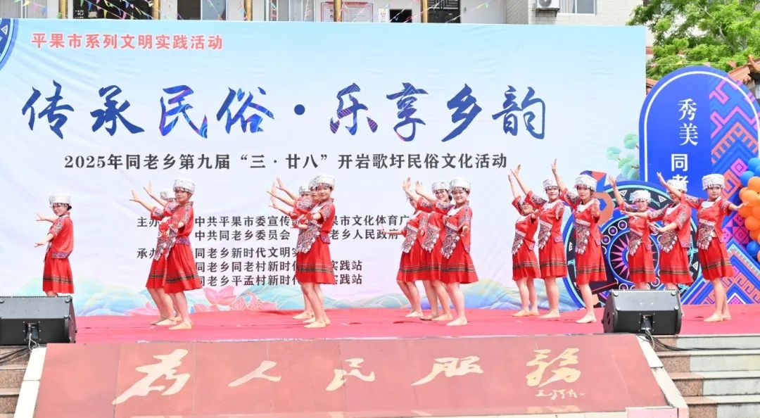 2025年4月25日,廣西工程職業(yè)學(xué)院學(xué)子參加平果市同老鄉(xiāng)舉辦的第九屆“三·廿八”開巖歌圩民俗文化活動(dòng),并帶來精彩的節(jié)目表演。他們與當(dāng)?shù)卮迕颀R聚一堂,以歌會(huì)友、以舞傳情,共同奏響民族團(tuán)結(jié)的和諧樂章,繪就一幅各族同胞交融共生的動(dòng)人畫卷。