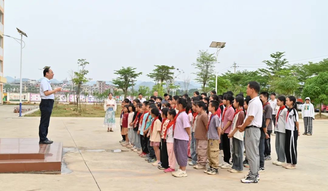 為弘揚(yáng)紅色精神,踐行公益使命,助力教育事業(yè)發(fā)展,2025年4月29日,廣西工程職業(yè)學(xué)院赴平果市吉祥小學(xué)開展“弘揚(yáng)紅色文化 傳承紅色基因”慈善助學(xué)捐贈活動,捐贈圖書及學(xué)習(xí)用品等,為孩子們送去了學(xué)習(xí)物資與關(guān)懷,希望孩子們通過紅色文化的浸潤,博覽群書,增長知識面,奮發(fā)向上,實(shí)現(xiàn)人生夢想?;顒佑善焦忻裾峙c平果市慈善促進(jìn)會主辦。我校副校長黃德偉、團(tuán)委副書記李麗清及教師代表參加了捐贈活動