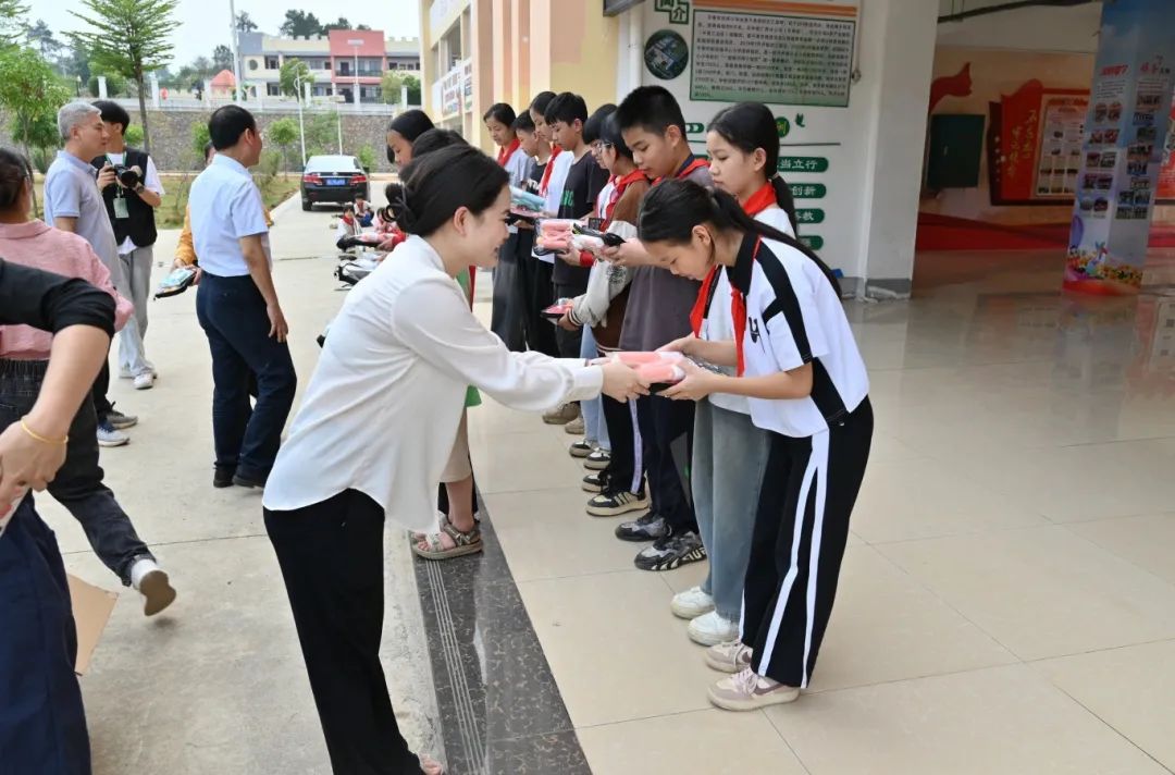捐贈儀式現(xiàn)場溫情涌動,老師們化身“愛心使者”,親手將承載著關(guān)懷與期許的物資遞到受助學(xué)子手中。一本本紅色書籍傳遞精神力量,一件件學(xué)習(xí)用品飽含殷切期望,每一份物資都承載著對學(xué)子成長的深情祝福,為他們點(diǎn)亮求學(xué)路上的溫暖之光。