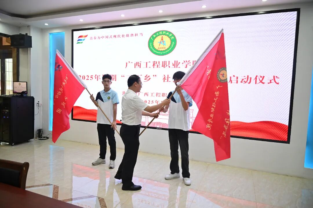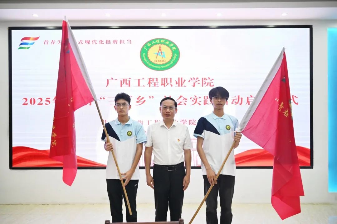 廣西工程職業(yè)學(xué)院2025暑期“三下鄉(xiāng)”社會實(shí)踐活動啟動儀式在雄壯激昂的國歌聲中拉開序幕。