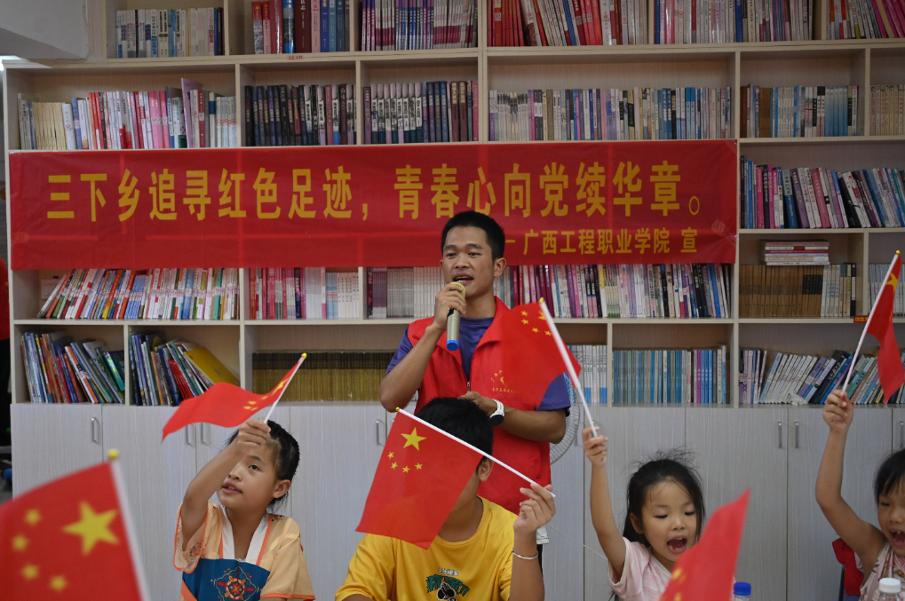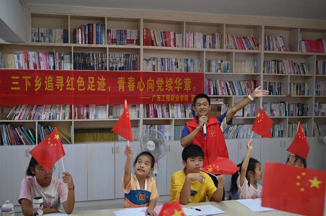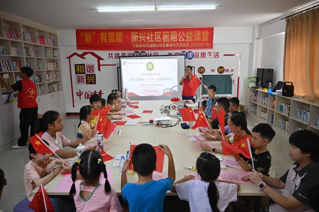 2025年7月14日,廣西工程職業(yè)學(xué)院“紅色研學(xué)踐初心·青春聚力促振興”實(shí)踐團(tuán)、廣西工程職業(yè)學(xué)院“青春先鋒行,筑夢(mèng)在基層”服務(wù)團(tuán)走進(jìn)平果市新興社區(qū)開(kāi)展暑期公益課堂。通過(guò)組織開(kāi)展唱愛(ài)國(guó)歌曲、愛(ài)國(guó)主題繪畫創(chuàng)作等豐富多彩的藝術(shù)活動(dòng),在培養(yǎng)孩子們藝術(shù)審美能力的同時(shí),讓愛(ài)國(guó)主義精神在幼小心靈中生根發(fā)芽。