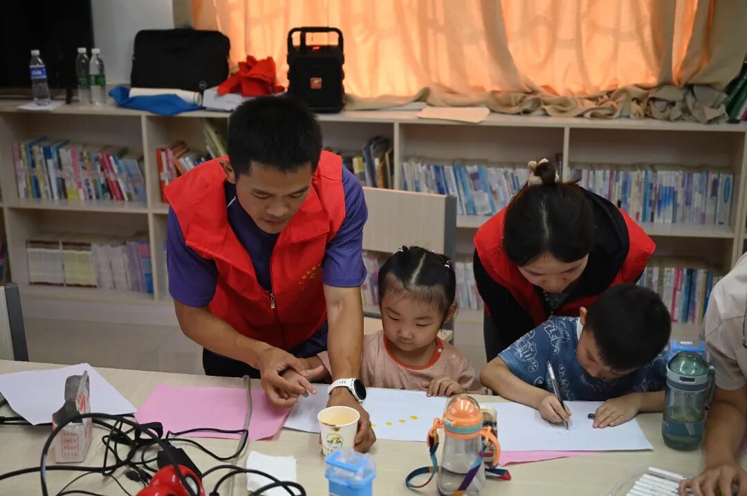 志愿者們?cè)谝慌哉J(rèn)真指導(dǎo),耐心解答孩子們的問(wèn)題,與他們一起分享繪畫的快樂(lè)。