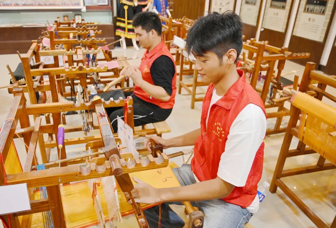 成員們操作織機,感受古老的紡織智慧,在一挑一織間,解鎖新體驗。