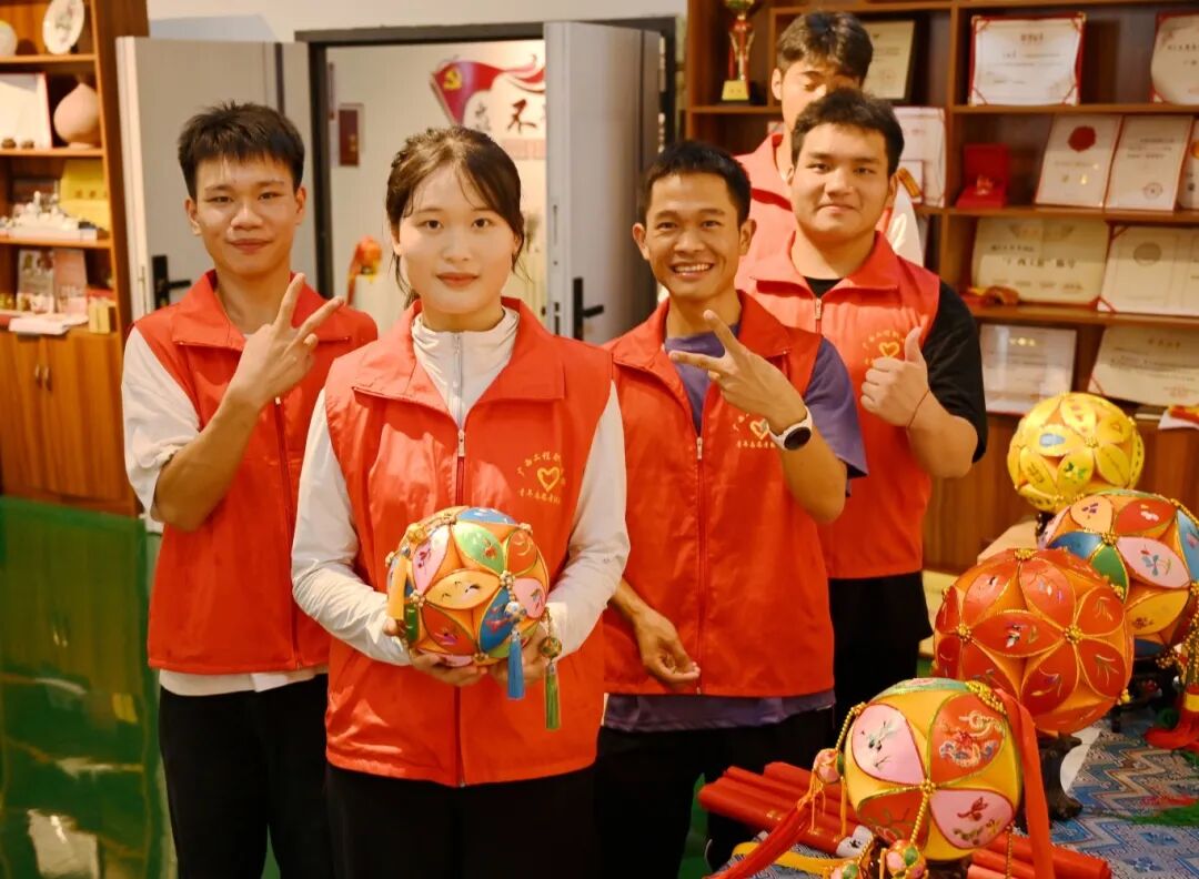 工作人員詳細介紹了繡球的歷史淵源、制作工藝以及文化內(nèi)涵。靖西繡球的制作工序繁多,從選料、裁剪、刺繡到填充、裝飾,每一個步驟都需要精心對待,一件精美的繡球往往需要花費繡工們數(shù)天甚至數(shù)月的時間。成員們仔細觀察著每一個繡球的細節(jié),對繡工們精湛的技藝贊嘆不已。