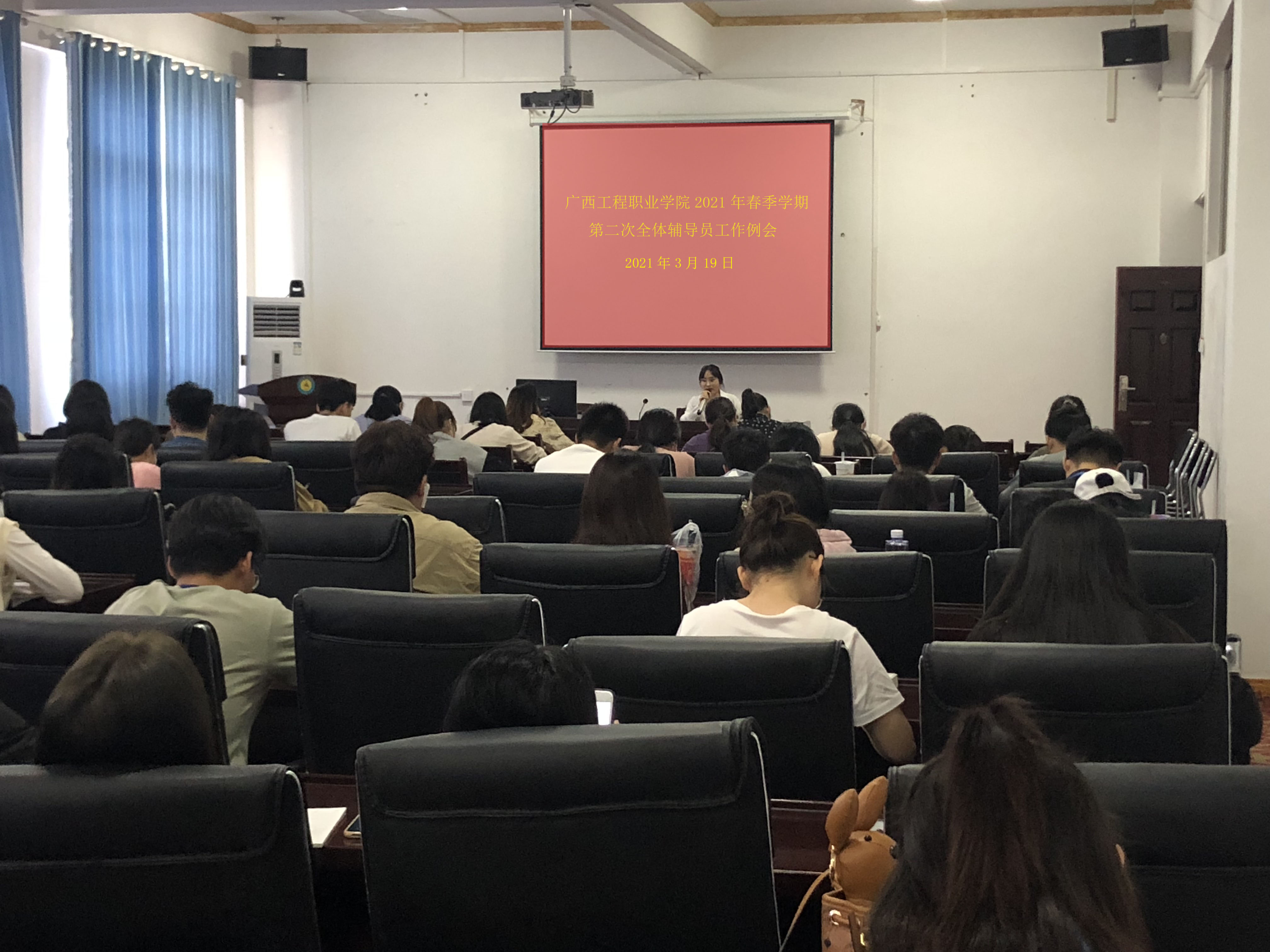 為確保新學(xué)期學(xué)生管理工作平穩(wěn)有序開展,2021年3月19日下午,學(xué)生工作處在舊圖書館學(xué)術(shù)報(bào)告廳組織召開新學(xué)期全體輔導(dǎo)員會(huì)議。學(xué)生工作處工作人員、各二級(jí)學(xué)院全體輔導(dǎo)員參加了會(huì)議,本次會(huì)議由校長(zhǎng)助理黃秋霞主持。