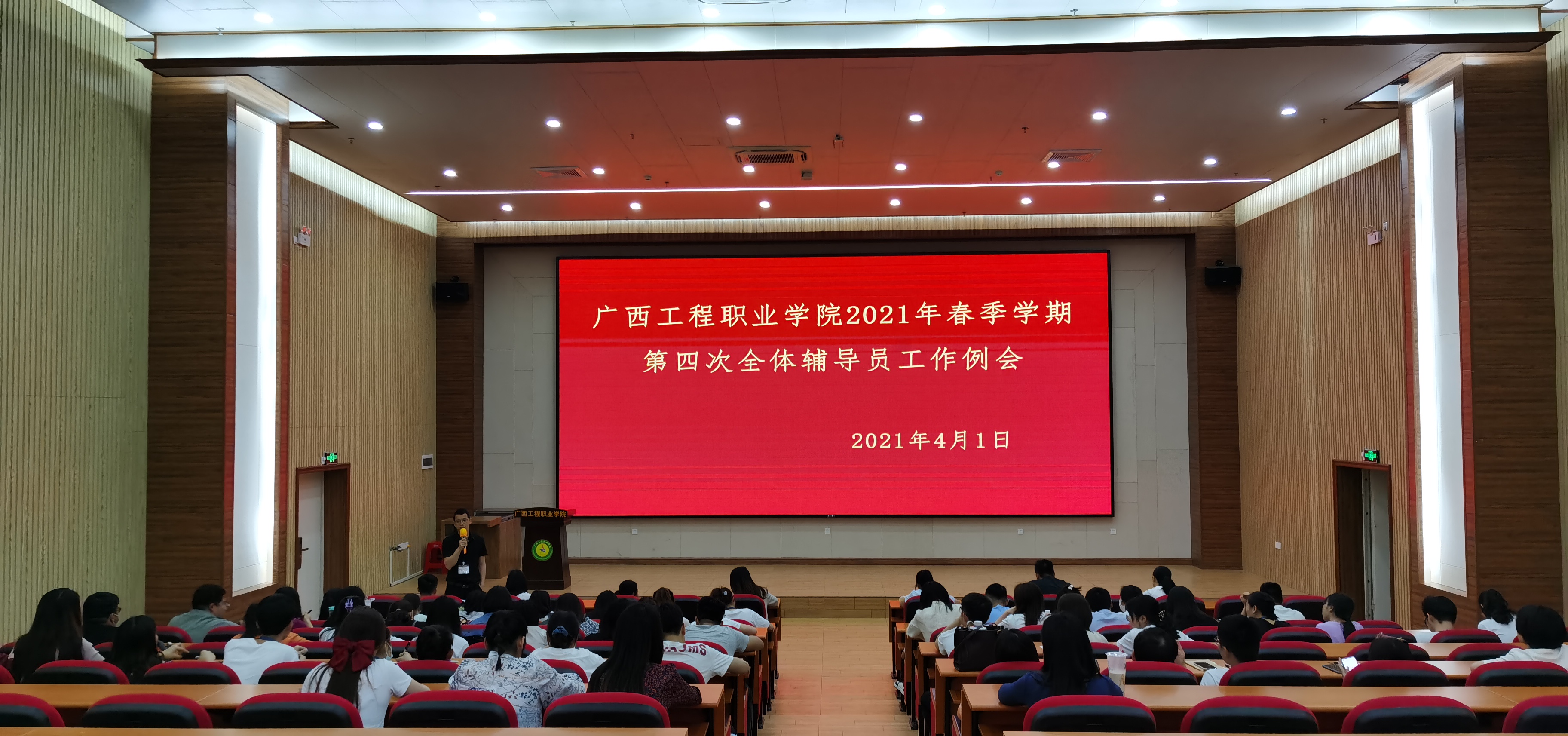 2021年4月1日,學(xué)生工作處在圖文信息大樓一樓學(xué)術(shù)報(bào)告廳召開輔導(dǎo)員工作例會(huì),本次例會(huì)以“清明節(jié)安全工作”為主題。校長(zhǎng)助理黃秋霞、學(xué)生工作處成員、各二級(jí)學(xué)院負(fù)責(zé)人及全體輔導(dǎo)員參加會(huì)議。會(huì)議由學(xué)生工作處處長(zhǎng)吳發(fā)德主持。