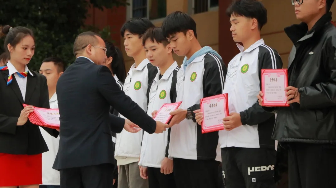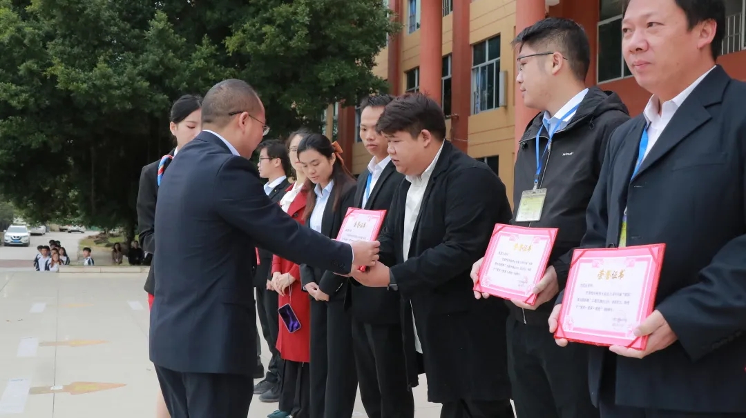 學校副校長黃德偉宣讀《廣西工程職業(yè)學院2021年“祖國,我為您驕傲”主題升旗儀式表彰決定》,共有1846名師生被授予 “愛黨愛國愛校”榮譽稱號。學校黨委委員、副校長彭高彬為獲得表彰的師生代表進行了頒獎。