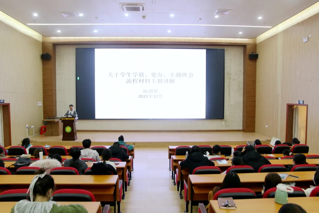 學生工作處陳國昇老師系統(tǒng)詳實地為大家講解了學校學籍管理的相關要求,詳細解讀了學校學籍管理制度中的入學注冊、休學與復學、違紀處分、畢業(yè)與結業(yè)等方面內(nèi)容。希望學生科長、輔導員進一步提高學生學籍管理水平,認真落實學校學籍管理的工作安排,組織學生認真學習學校學籍管理規(guī)定,做到熟知、遵守、踐行,以幫助同學們形成良好的學習習慣,順利度過大學學習生活,按期畢業(yè),學有所成。