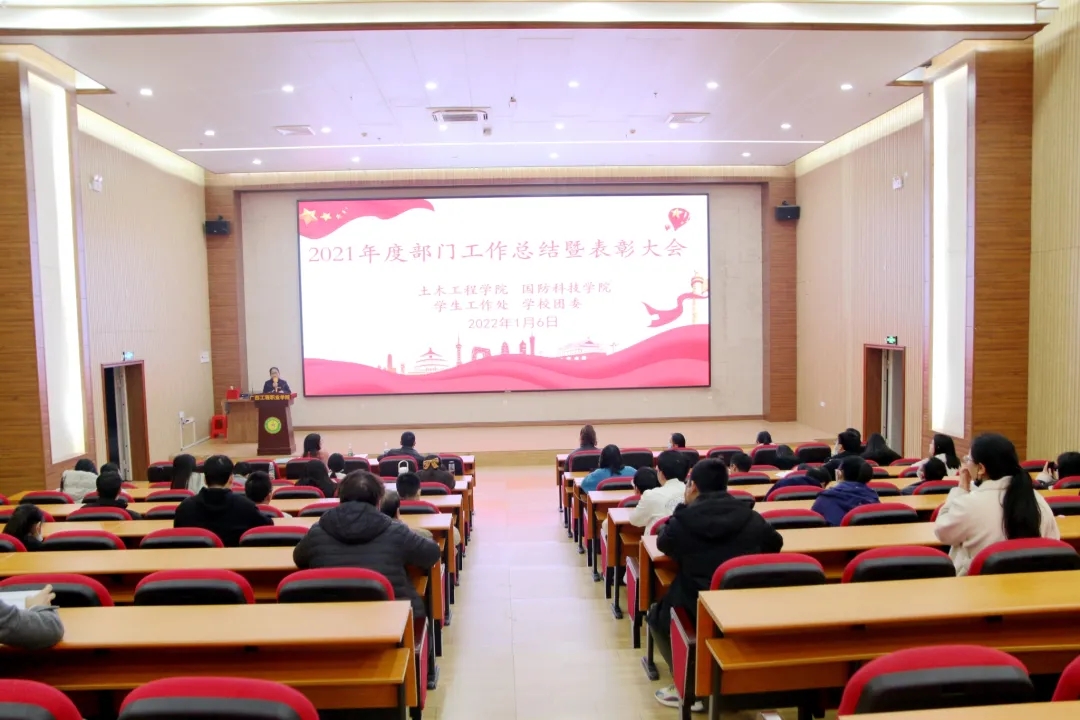 2022年1月6日下午,我校土木工程學(xué)院、國防科技學(xué)院、學(xué)生工作處和校團(tuán)委在圖文信息大樓一樓報(bào)告廳聯(lián)合召開2021年度工作總結(jié)暨表彰大會(huì),總結(jié)各部門的年度工作,表彰先進(jìn),部署下學(xué)期工作任務(wù),推動(dòng)各部門工作在2022年取得新成績(jī)。