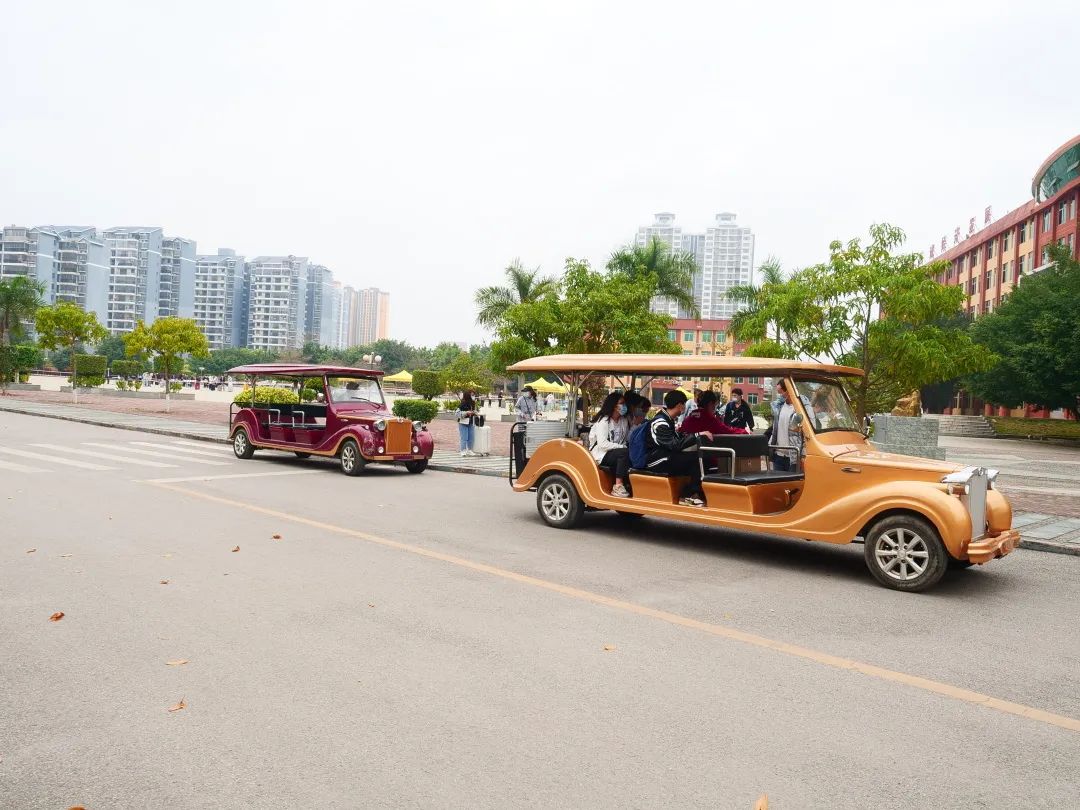 學(xué)校貼心安排觀光車接送同學(xué)們返回宿舍