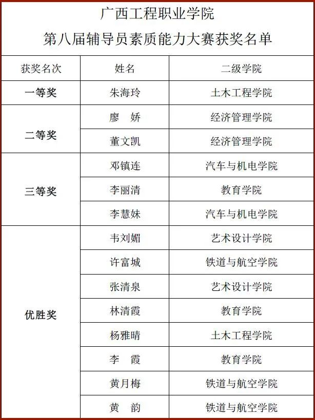 廣西工程職業(yè)學(xué)院第八屆輔導(dǎo)員素質(zhì)能力大賽