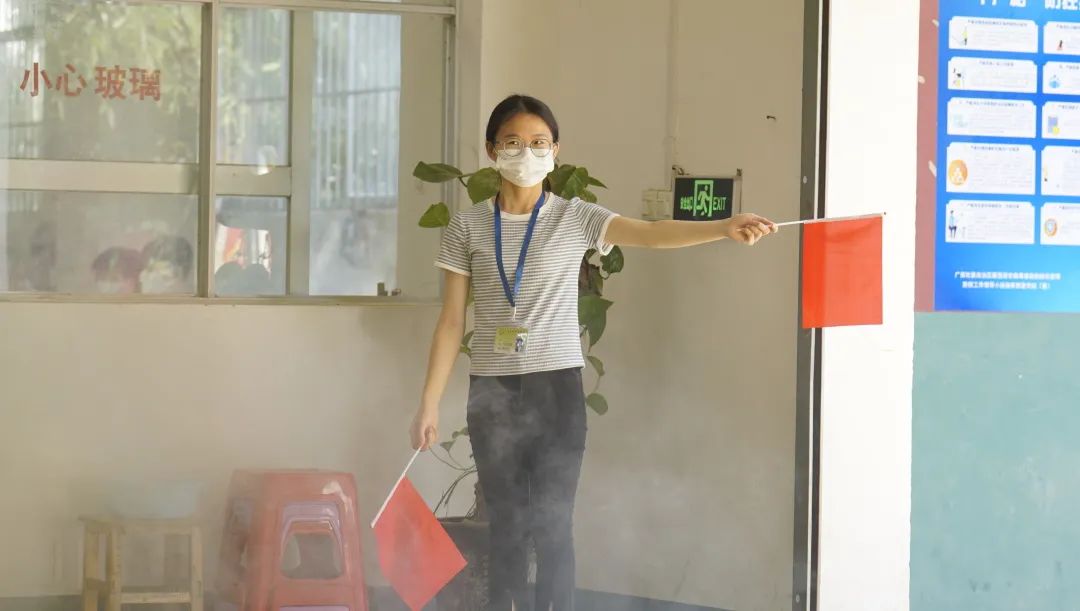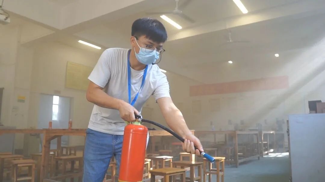 任課教師迅速用滅火器消除火源