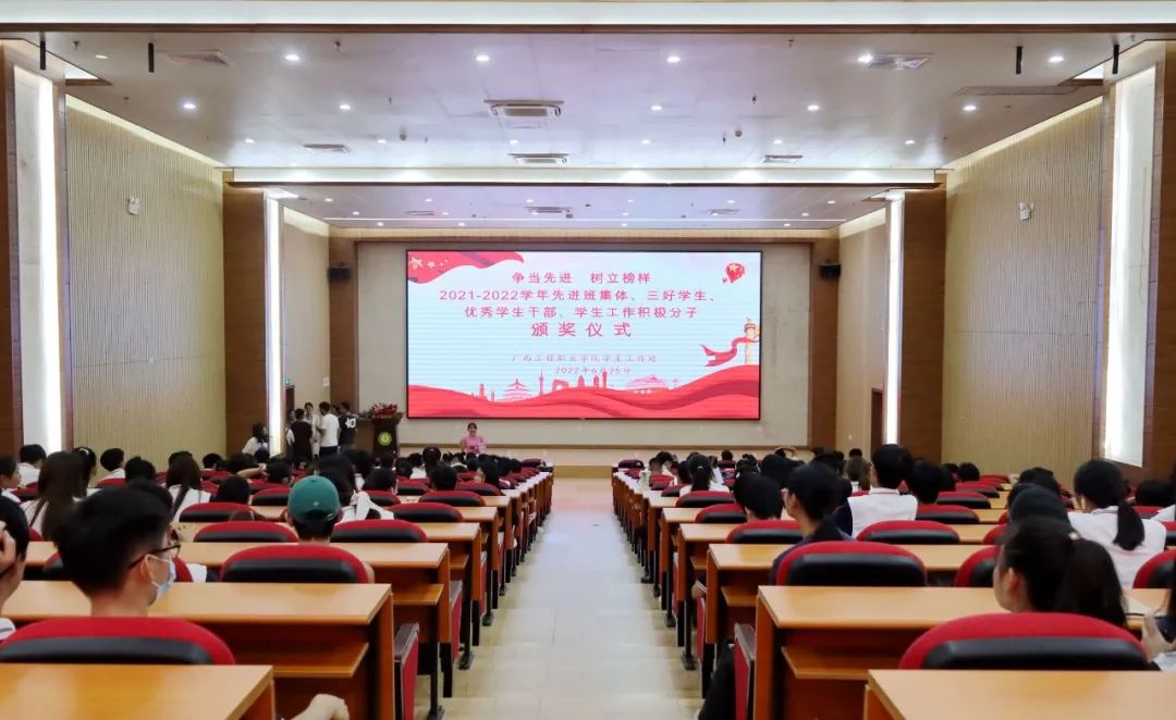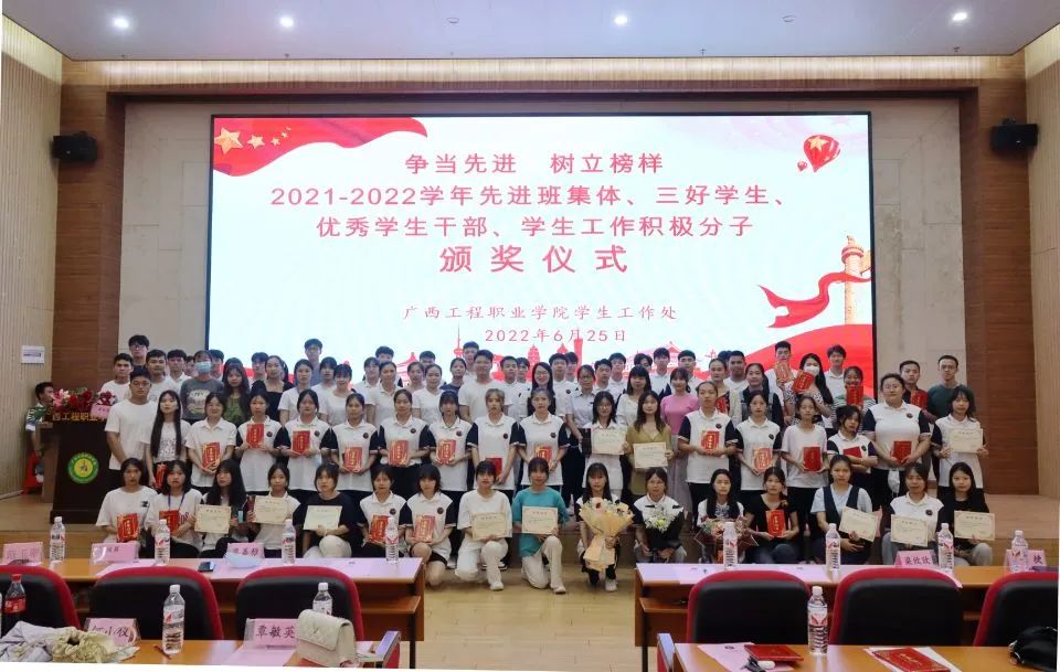 為進(jìn)一步推動良好校風(fēng)學(xué)風(fēng)建設(shè),鼓勵學(xué)生自主管理,營造健康文明、積極向上的學(xué)習(xí)和生活環(huán)境,推動班級文化、宿舍文化和集體凝聚力,增強(qiáng)同學(xué)們自我管理、自我教育、自我服務(wù)的意識,激勵同學(xué)們勤奮學(xué)習(xí)、奮發(fā)向上,表彰先進(jìn),樹立榜樣,2022年6月25日晚,學(xué)生工作處在圖文信息大樓一樓報告廳組織召開2021—2022學(xué)年度先進(jìn)班集體、三好學(xué)生、優(yōu)秀學(xué)生干部、學(xué)生工作積極分子、文明宿舍等表彰大會。