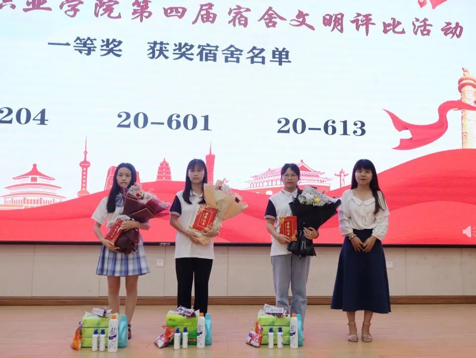 經(jīng)濟(jì)管理學(xué)院辦公室主任雷紅為榮獲一等獎的宿舍頒獎