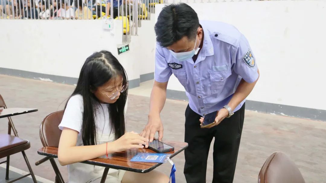 講座過(guò)后,工作人員還現(xiàn)場(chǎng)指導(dǎo)學(xué)生掃碼下載“國(guó)家反詐APP”。