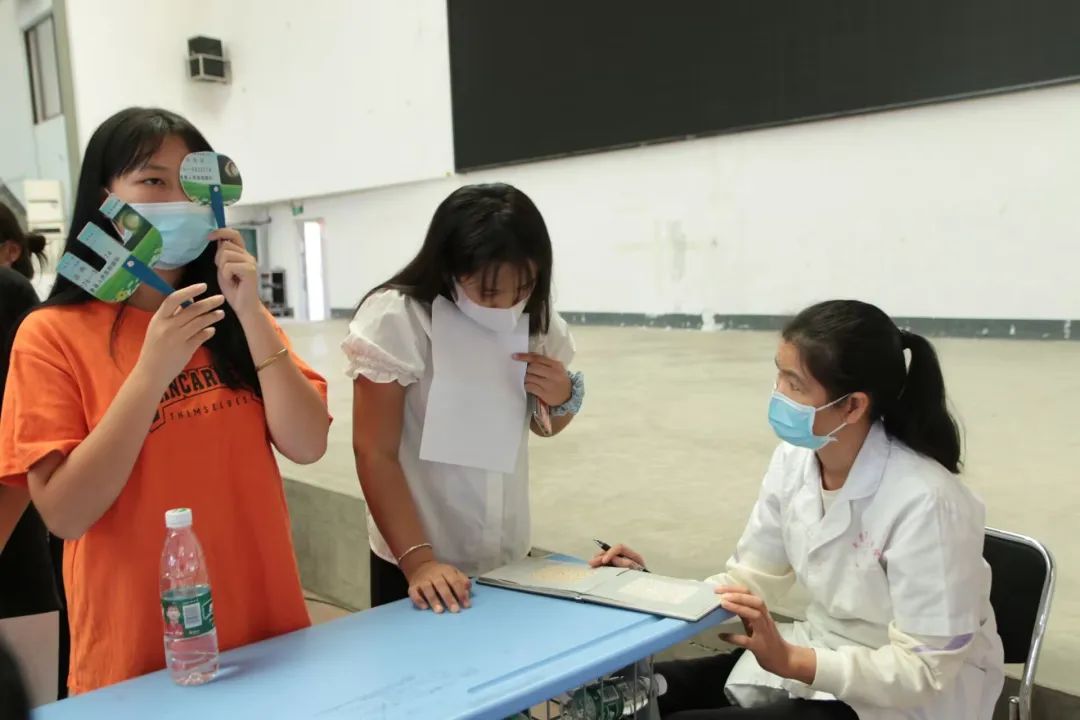 為了預(yù)防學(xué)生發(fā)生暈倒等的突發(fā)情況,我校同時在體檢區(qū)設(shè)置了休息點(diǎn),提供葡萄糖水為學(xué)生補(bǔ)充能量。