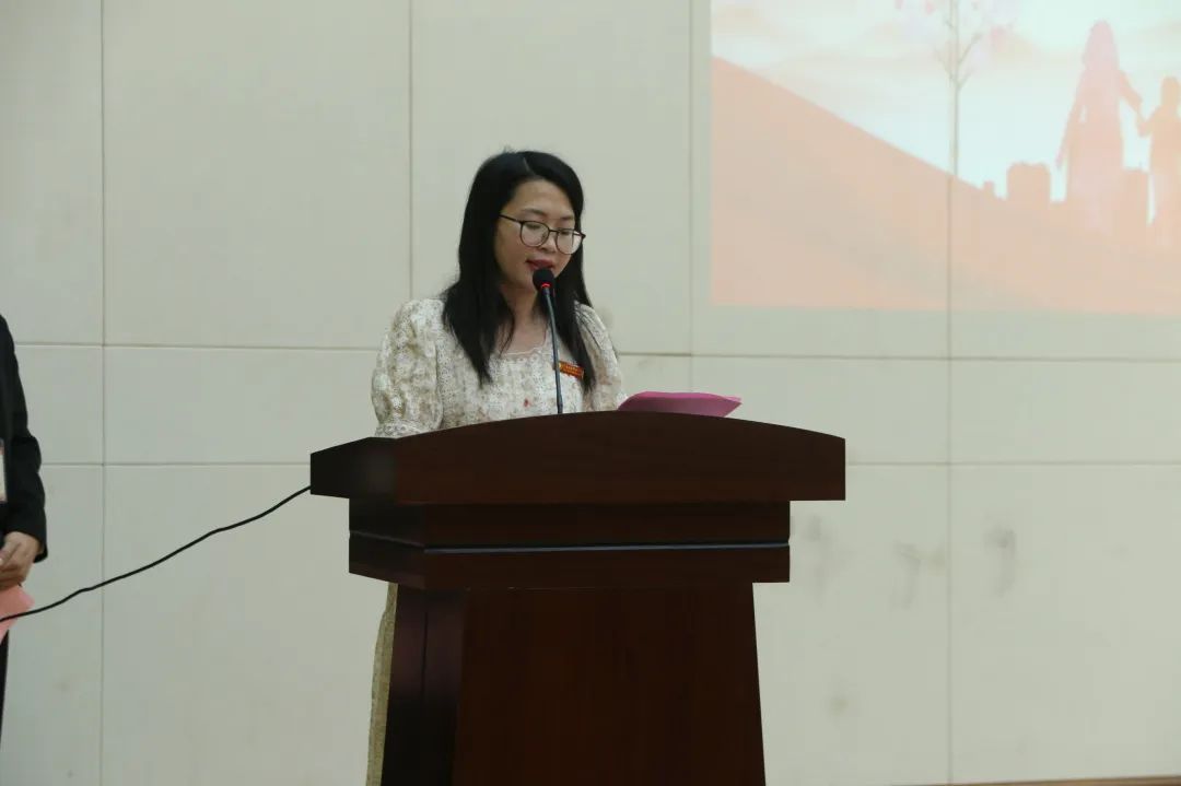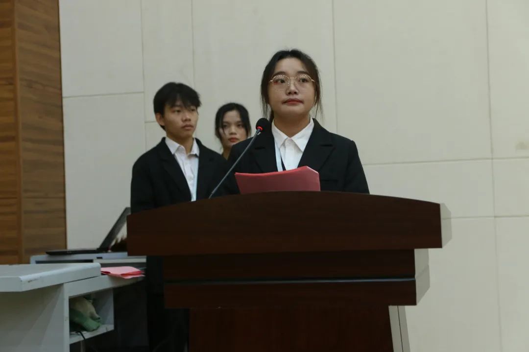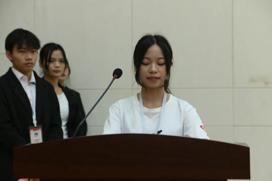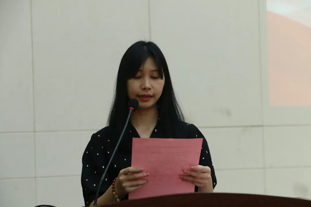 校團(tuán)委黃詩(shī)晴老師宣讀青年志愿者服務(wù)團(tuán)干部及干事名單