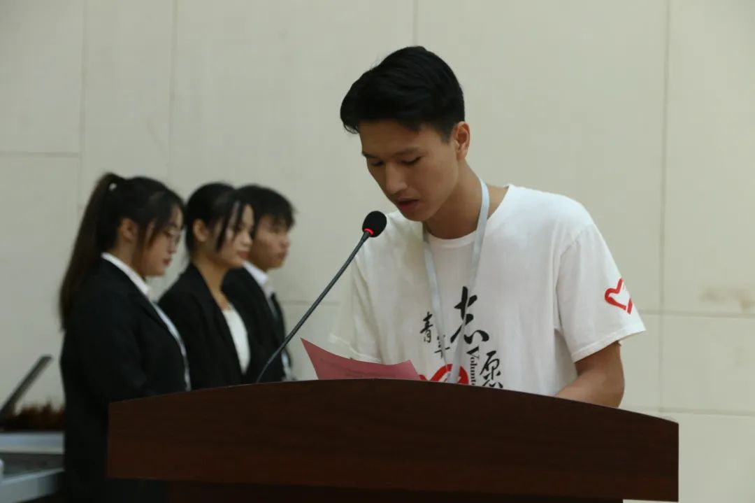 青年志愿者服務(wù)團(tuán)副團(tuán)長(zhǎng)梁港宣讀社團(tuán)的規(guī)章制度和行為準(zhǔn)則,希望全體成員共同遵守,嚴(yán)以律己,樂于助人。