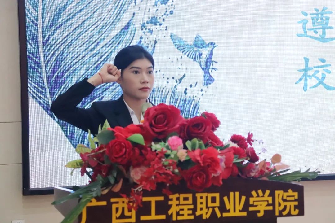 學(xué)生工作處副處長李麗詩致辭,她指出,作為學(xué)生干部要明白自身的身份與職責(zé),既要做好本身的工作任務(wù),也要兼顧自己的學(xué)業(yè);既要以身作則,也要監(jiān)督與提醒同學(xué)們不要違規(guī)違紀(jì)。