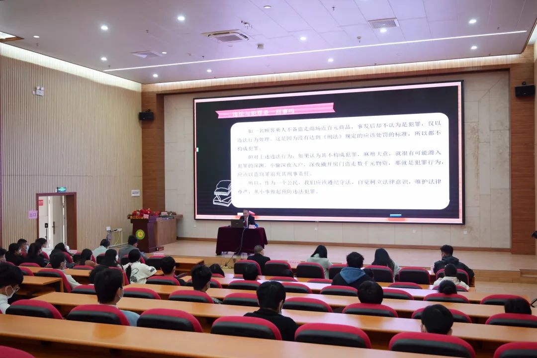 講座中,黃亮庭長將事實案例與自身經(jīng)驗相結(jié)合,用淺顯易懂的語言、生動活潑的方式,向在場學(xué)生講解了哪些行為是違法,哪些行為是犯罪及違法犯罪行為的惡劣后果,同時,就如何抵制不良風(fēng)氣侵襲,如何提高自我保護防范意識等內(nèi)容進行了詳細闡述。