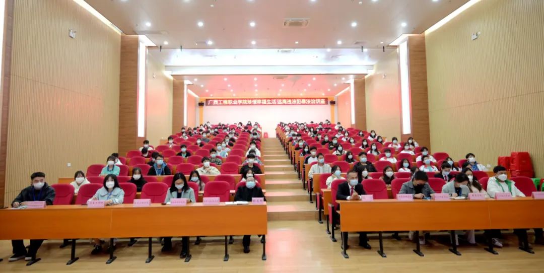 為進一步推進平安校園、法治校園建設(shè),增強學(xué)生的法治意識,預(yù)防和減少青少年違法犯罪,12月15日下午,平果市人民法院在廣西工程職業(yè)學(xué)院開展憲法宣傳志愿服務(wù)活動。平果市人民法院刑事審判庭庭長、一級法官、廣西工程職業(yè)學(xué)院法治副校長黃亮在學(xué)校圖文信息大樓學(xué)術(shù)報告廳作題為《珍惜幸福生活 遠離違法犯罪》的法治講座。學(xué)校紀(jì)委書記、副校長彭高彬,學(xué)生工作處、保衛(wèi)處、各二級學(xué)院負責(zé)人及師生代表聆聽講座。講座由保衛(wèi)處王冬冬副處長主持。