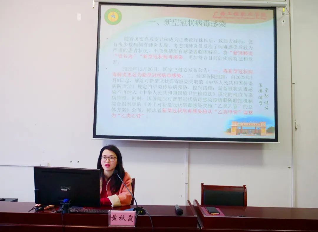 2月10日,學(xué)校在圖書館報(bào)告廳開展2023年新冠病毒感染防控知識及健康驛站建設(shè)管理工作業(yè)務(wù)培訓(xùn),黨委副書記黃秋霞作專題培訓(xùn)。學(xué)生工作處、后勤管理中心、保衛(wèi)處、各二級學(xué)院、五年大專部等相關(guān)部門負(fù)責(zé)人、全體輔導(dǎo)員、班主任參加培訓(xùn)。