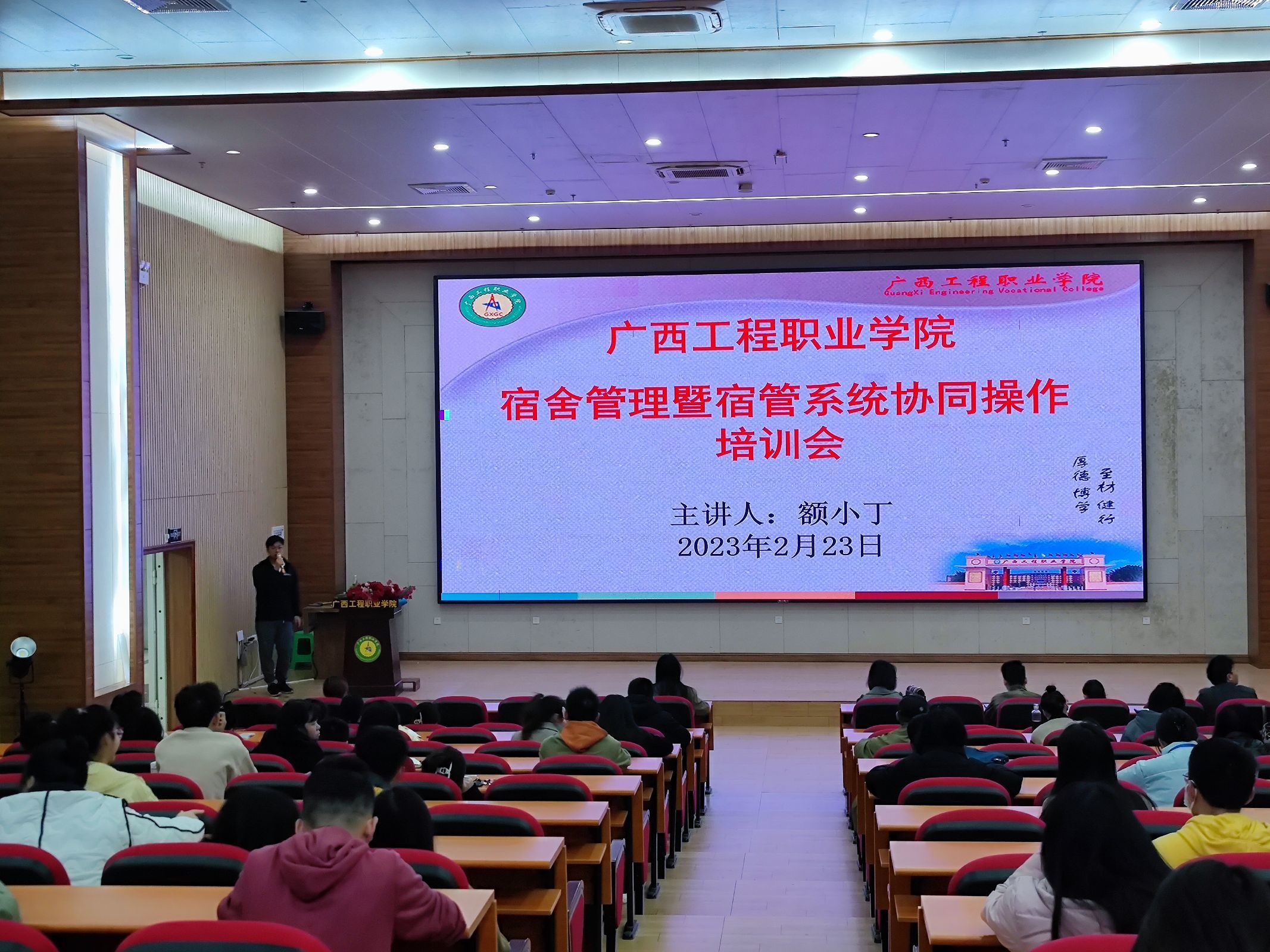 為進一步推進智慧校園建設(shè),提升宿舍管理水平,推進宿舍服務(wù)信息化、系統(tǒng)化、科學化。按照學校數(shù)字化校園建設(shè)工作安排,2023年2月23日,我校學生工作處在圖文信息大樓一樓學術(shù)報告廳開展學生宿舍管理系統(tǒng)專題培訓,二級學院院長、科長、副書記、輔導員參加了會議。會議由學生工作處宿管科額小丁老師主持。