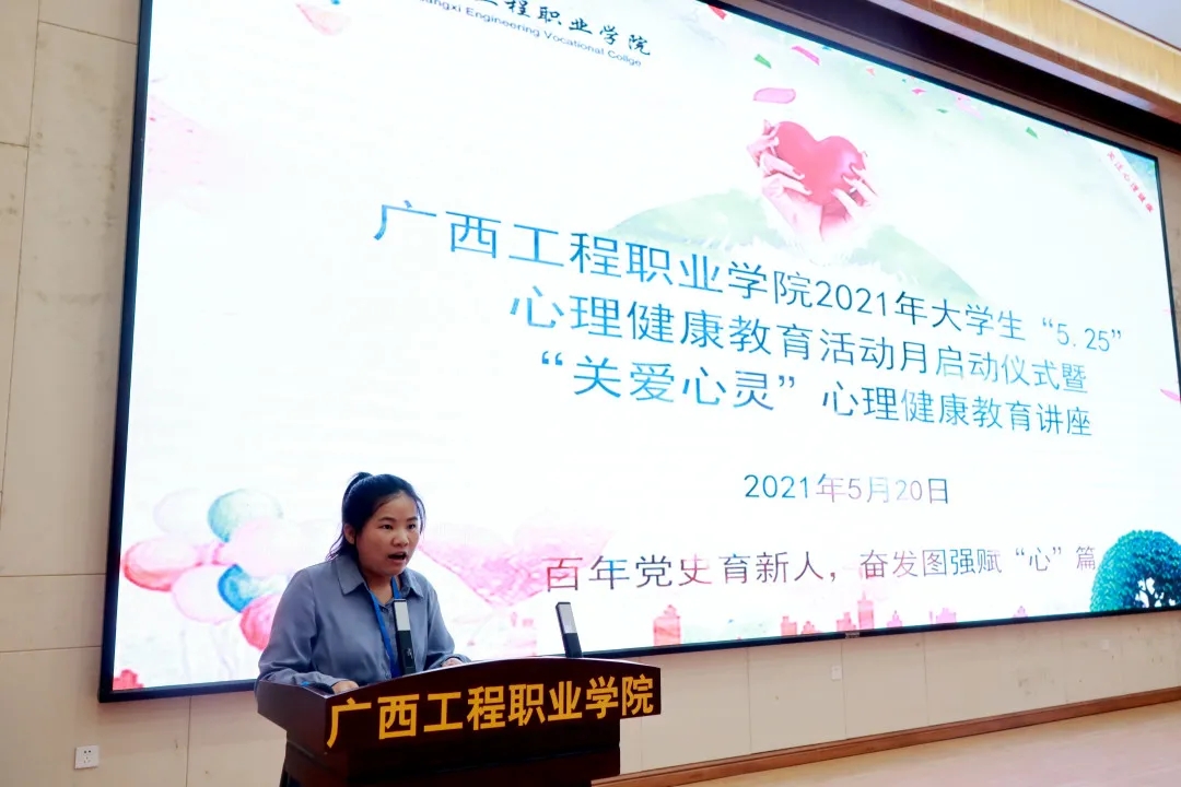 為進(jìn)一步提高學(xué)生的心理健康水平,培育學(xué)生熱愛(ài)生命、自強(qiáng)不息、積極向上的健康心態(tài),加強(qiáng)人文關(guān)懷和心理疏導(dǎo),開(kāi)展我校學(xué)生心理健康教育活動(dòng),促進(jìn)學(xué)生心理健康素質(zhì)與愛(ài)黨愛(ài)國(guó)思想道德素質(zhì)、科學(xué)文化素質(zhì)協(xié)調(diào)發(fā)展。2021年5月20日下午,我校學(xué)生工作處在圖文信息大樓一樓學(xué)術(shù)報(bào)告廳組織開(kāi)展2021年我校大學(xué)生“5·25”心理健康教育活動(dòng)月啟動(dòng)儀式暨“關(guān)愛(ài)心靈”心理健康教育講座。