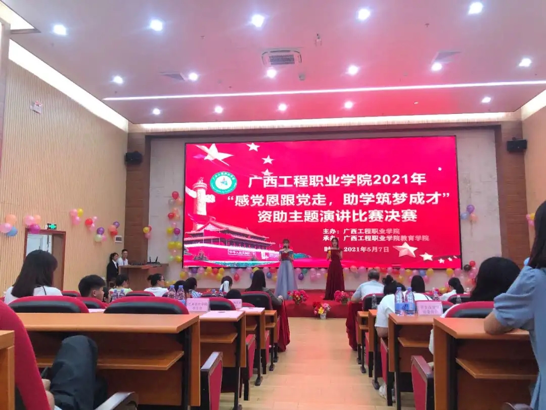 為了進(jìn)一步推進(jìn)我校學(xué)生資助政策宣傳工作,培育受助學(xué)生的愛黨愛國情感和感恩意識,2021年5月7日,由我校主辦,我校教育學(xué)院承辦的廣西工程職業(yè)學(xué)院2021年“感黨恩跟黨走,助學(xué)筑夢成才”演講比賽決賽于我校于圖文信息大樓一樓學(xué)術(shù)報告廳舉行。學(xué)校黨委副書記、副校長胡細(xì)木、副校長林萌、教育學(xué)院副院長梁善雅及各學(xué)院師生代表到場觀看了本次比賽。