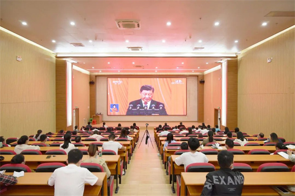 學(xué)校線下集中觀看的主要會場分別在圖文信息大樓報告廳、圖書館學(xué)術(shù)報告廳以及各個二級學(xué)院會議室。學(xué)校黨委副書記黃秋霞,紀(jì)委書記、副校長彭高彬,副校長羅艷妮、黃德偉,校長助理蔣茂麗等校領(lǐng)導(dǎo)與師生代表一起觀看了大會直播。未能到場的師生也紛紛通過廣播、電視、網(wǎng)絡(luò)等收聽收看會議盛況。
