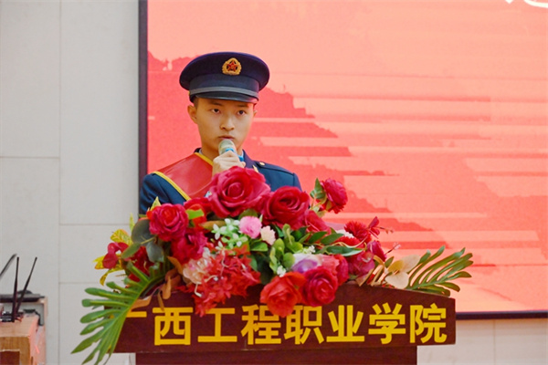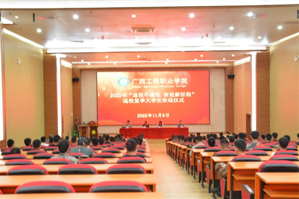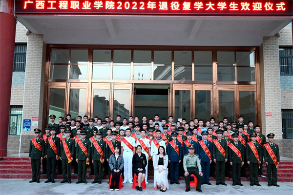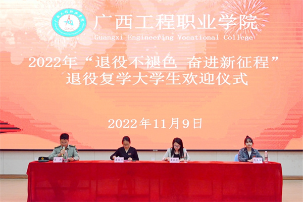 為弘揚(yáng)廣西工程職業(yè)學(xué)院學(xué)子積極參軍、報(bào)效祖國的優(yōu)良傳統(tǒng),營造尊崇軍人濃厚氛圍,進(jìn)一步做好退役復(fù)學(xué)學(xué)生的服務(wù)工作,11月9日下午,學(xué)校在圖文信息大樓一樓學(xué)術(shù)報(bào)告廳召開了2022年退役復(fù)學(xué)大學(xué)生“退役不褪色 奮進(jìn)新征程”歡迎會。黨委副書記黃秋霞,黨委委員、學(xué)生工作處副處長李麗詩,國防科技學(xué)院副院長李捷、學(xué)工處資助科科長范玉翠出席歡迎儀式,各二級學(xué)院學(xué)生科長、22級輔導(dǎo)員及2022年退役復(fù)學(xué)大學(xué)生參加了歡迎儀式。李捷副院長主持儀式。