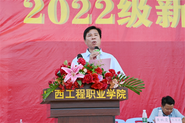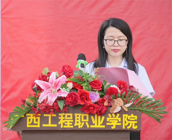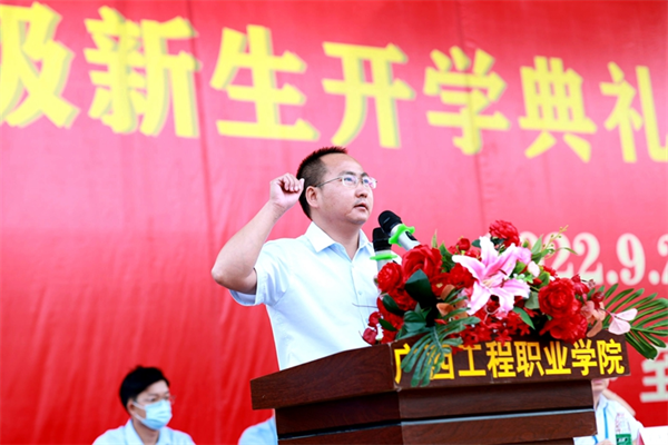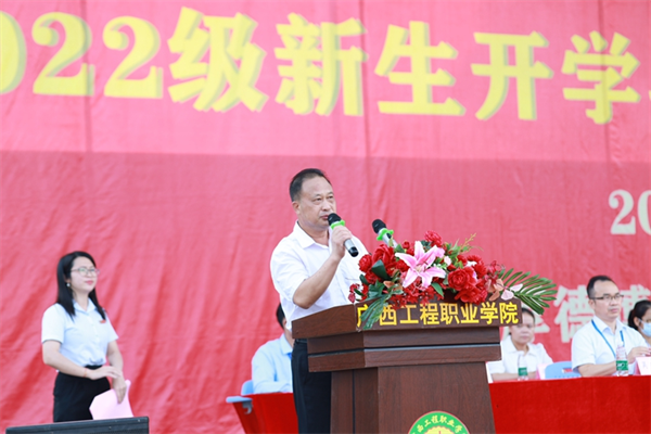 紀(jì)委書記、副校長彭高彬帶領(lǐng)全體新生進(jìn)行入學(xué)宣誓。全體新生以青春之名,宣誓表決心:我是廣西工程職業(yè)學(xué)院的學(xué)生,我將胸懷祖國,遵紀(jì)守法,嚴(yán)守校紀(jì)校規(guī),尊師愛校,勤奮好學(xué),團(tuán)結(jié)友愛;明德修身,誠以待人,毅以處事;謹(jǐn)記“厚德博學(xué),至材健行”校訓(xùn),弘揚(yáng)“熔煉工匠精神,鑄就一流技藝”的學(xué)校精神,緊跟時代步伐,勇?lián)鷼v史使命,立志成才,報(bào)效祖國。他們以鏗鏘有力的誓言奏響新時代青年的自強(qiáng)不息、學(xué)習(xí)向未來的最強(qiáng)音。