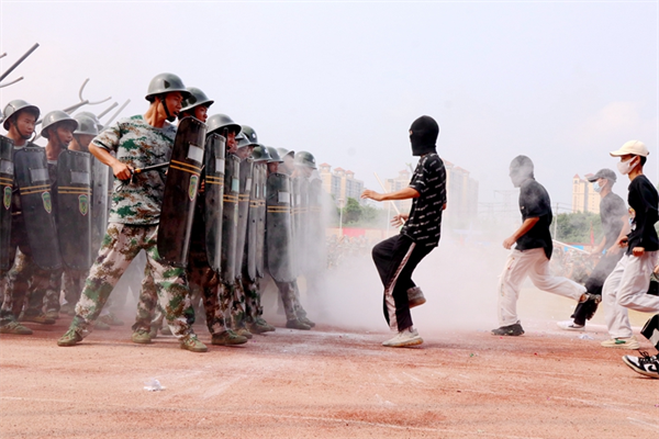 2022級新生軍訓(xùn)匯報(bào)表演正式開始。2022級全體新生各方隊(duì)依次進(jìn)行分列式、擺字、手語操、拳術(shù)、應(yīng)急棍、匕首操、戰(zhàn)術(shù)(防爆隊(duì)形)表演。他們軍姿標(biāo)準(zhǔn)、志氣高昂、口號嘹亮、動作干凈利落、精神抖擻、意氣風(fēng)發(fā),英姿颯爽,充分展示了新時代青年學(xué)生青春昂揚(yáng)、英武豪邁的精神風(fēng)貌。匯報(bào)表演在老師、同學(xué)們的陣陣掌聲和喝彩聲中圓滿結(jié)束。