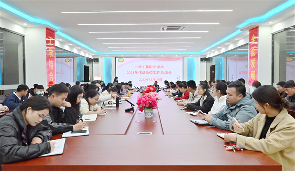 為進(jìn)一步推進(jìn)和完善依法治校工作,12月5日,我校在圖書館大數(shù)據(jù)中心召開2023年依法治校工作總結(jié)會,董事長李益、黨委書記蒙本曼、校長羅艷妮及全體校級領(lǐng)導(dǎo)、中層領(lǐng)導(dǎo)、科級干部、部門負(fù)責(zé)人參加會議,本次會議由校長羅艷妮主持。