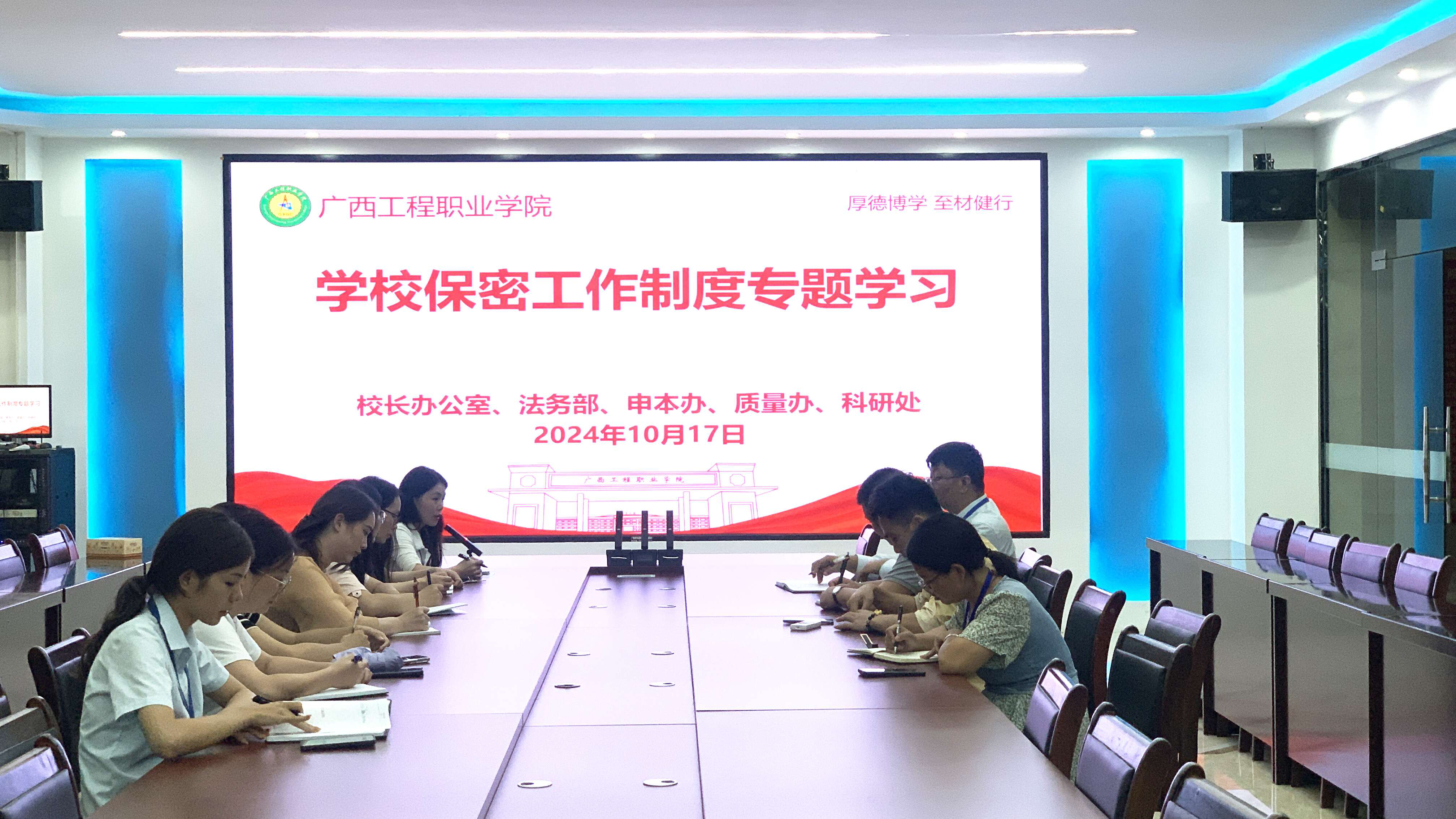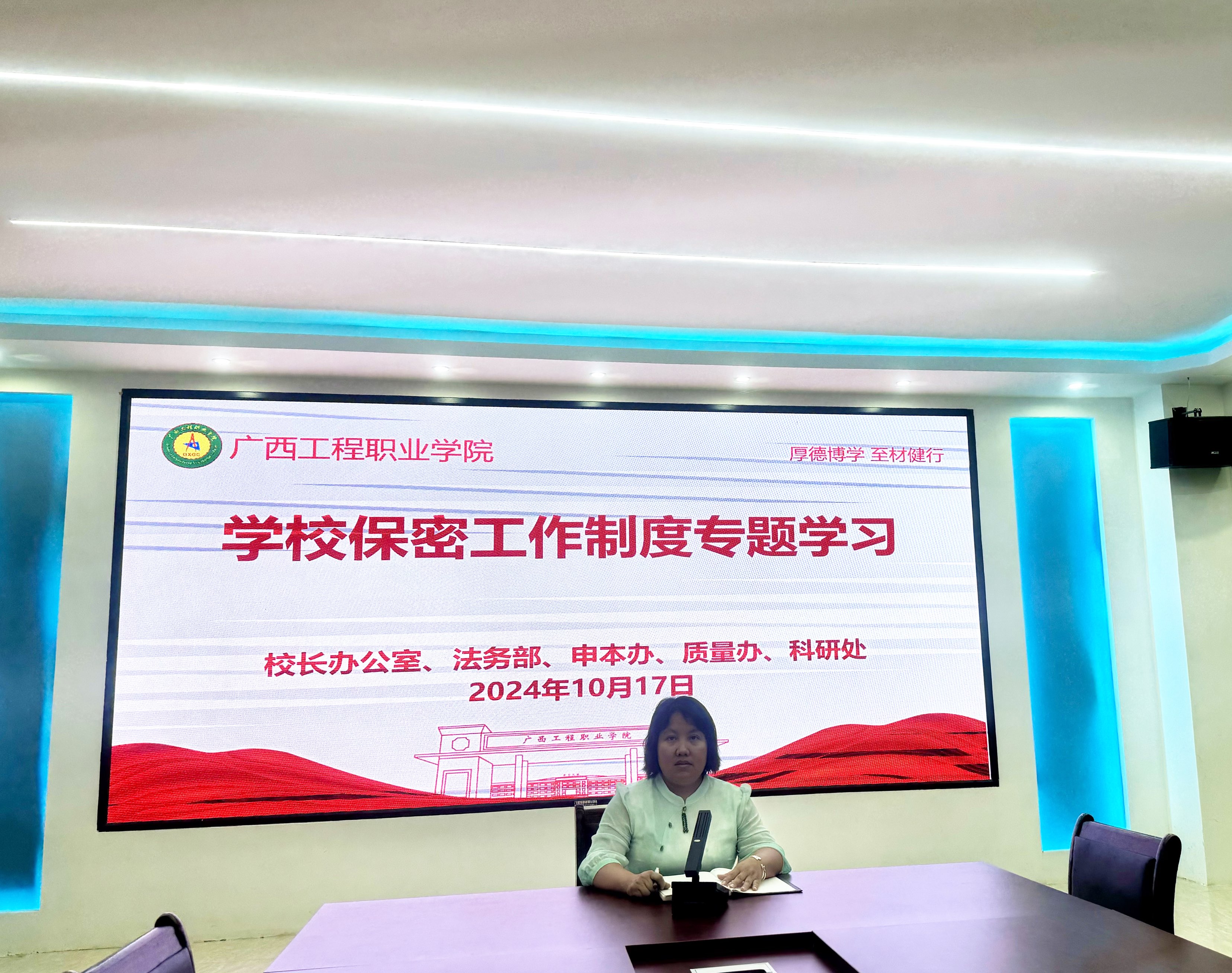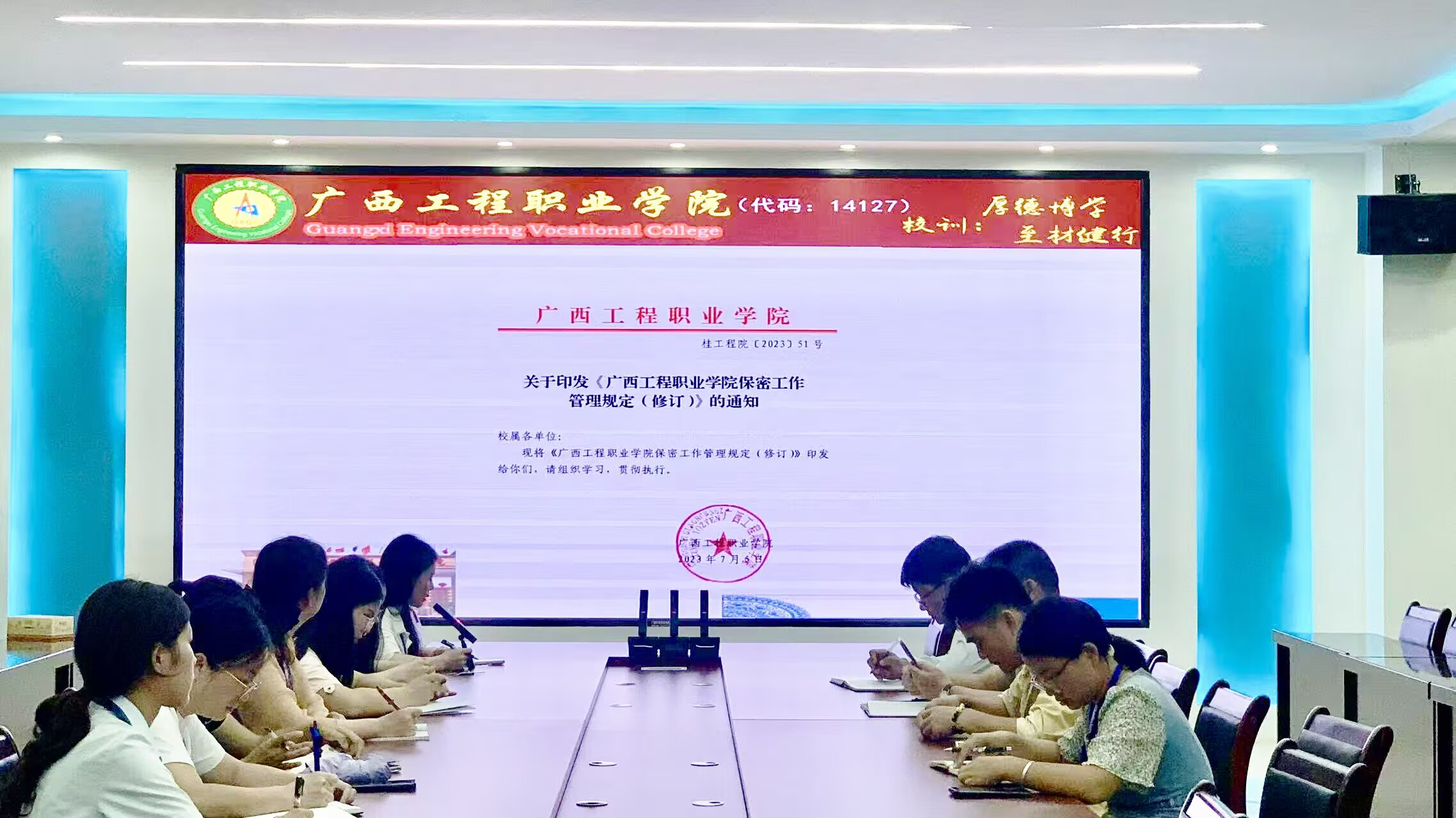 為進一步加強保密工作管理,切實增強本單位教師的保密意識,筑牢保密安全防線,于10月17日組織本單位開展了保密工作制度專題學習活動,會議由校長辦公室、法務部、申本辦、質量管理辦公室、科研處全體成員參加。此次活動旨在深入貫徹習近平總書記關于保密工作的重要講話和指示批示精神,全面落實《廣西工程職業(yè)學院保密工作管理規(guī)定(修訂)的通知》的學習宣傳貫徹要求。