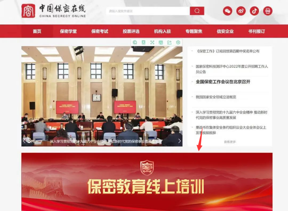 (2)通過中國保密在線網(wǎng)站進入培訓(xùn)系統(tǒng):點擊首頁標(biāo)題圖進入即可。