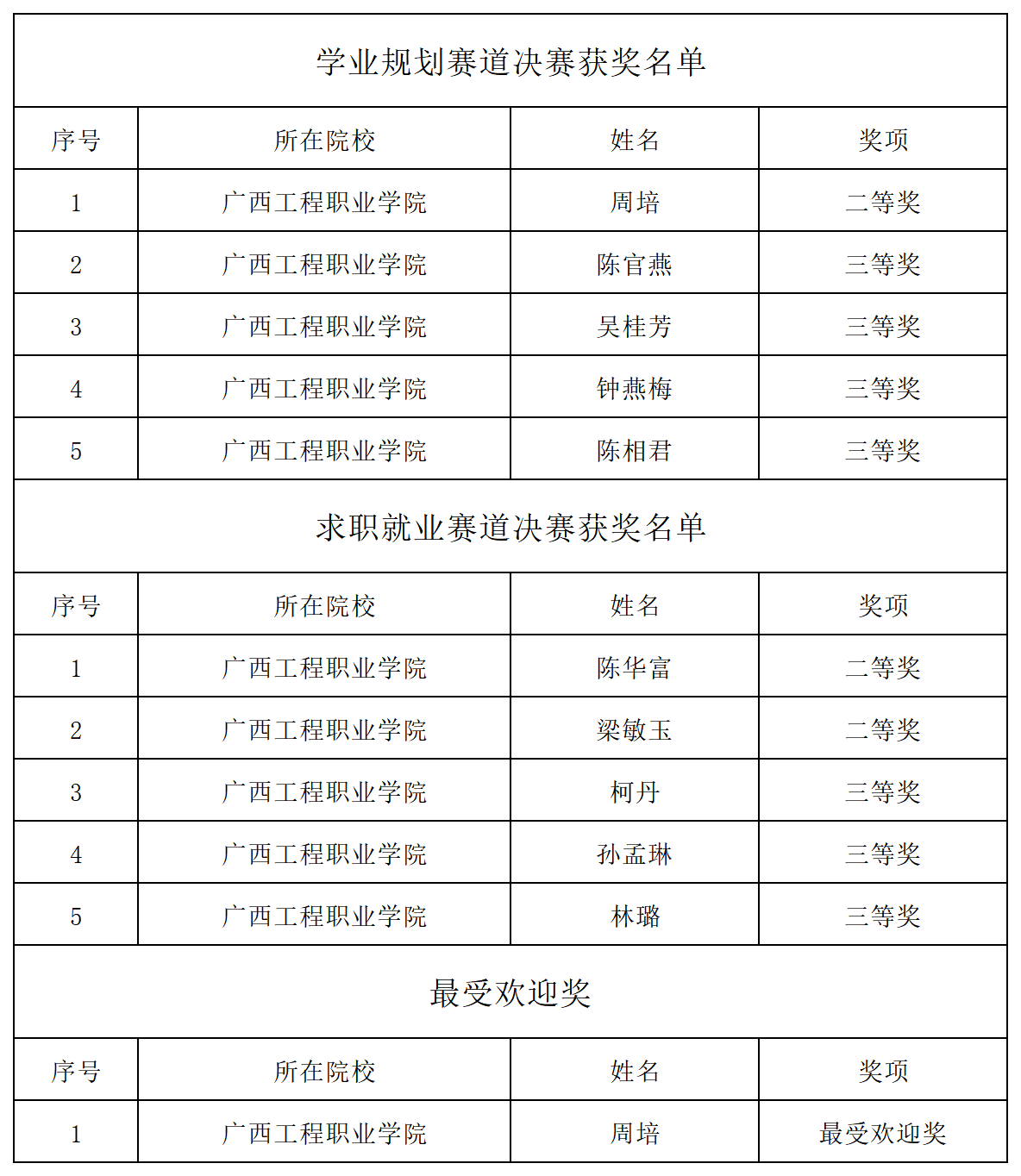 經(jīng)過激烈的角逐,我校學(xué)子最終榮獲學(xué)業(yè)規(guī)劃賽道榮獲二等獎(jiǎng)一項(xiàng)、三等獎(jiǎng)四項(xiàng),求職就業(yè)賽道二等獎(jiǎng)兩項(xiàng)、三等獎(jiǎng)三項(xiàng)。我校周培同學(xué)還斬獲“最受歡迎獎(jiǎng)”的殊榮。