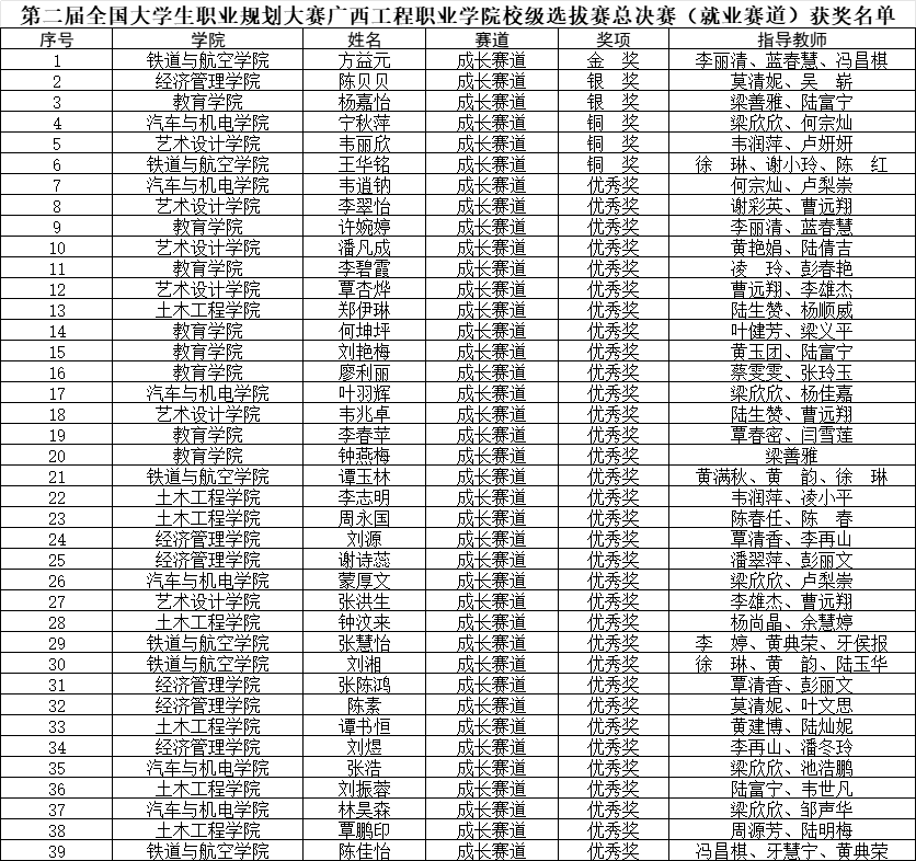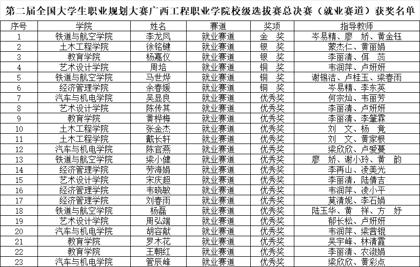 為深入貫徹執(zhí)行黨中央、國(guó)務(wù)院關(guān)于促進(jìn)高校畢業(yè)生就業(yè)工作的戰(zhàn)略部署,進(jìn)一步強(qiáng)化對(duì)大學(xué)生職業(yè)生涯教育的重視與就業(yè)指導(dǎo)服務(wù),提升大學(xué)生的職業(yè)生涯規(guī)劃意識(shí),引導(dǎo)他們盡早規(guī)劃并充分準(zhǔn)備未來的就業(yè)之路,以促進(jìn)我校畢業(yè)生實(shí)現(xiàn)更高質(zhì)量、更充分的就業(yè),我校于2024年12月14日成功舉辦了第二屆全國(guó)大學(xué)生職業(yè)規(guī)劃大賽的廣西工程職業(yè)學(xué)院校級(jí)選拔賽總決賽。