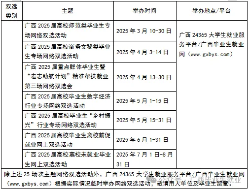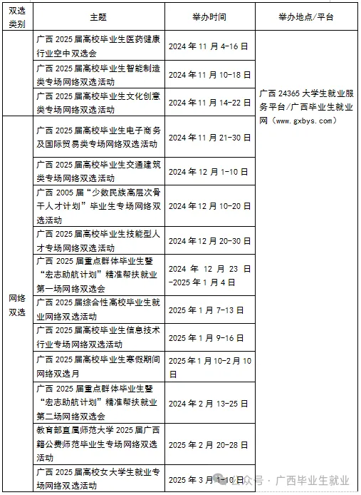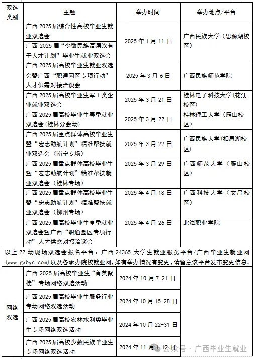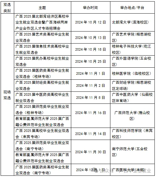 廣西2025屆普通高校畢業(yè)生就業(yè)雙選會(huì)安排表
